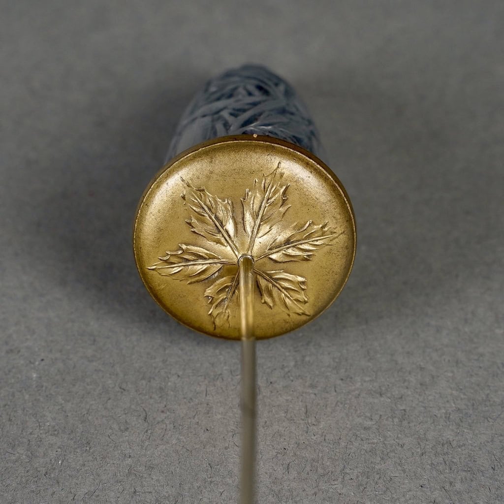 Epingle à Chapeau « Scarabées » en verre blanc patiné bleu sur clinquant argent de René Lalique créée en 1912.