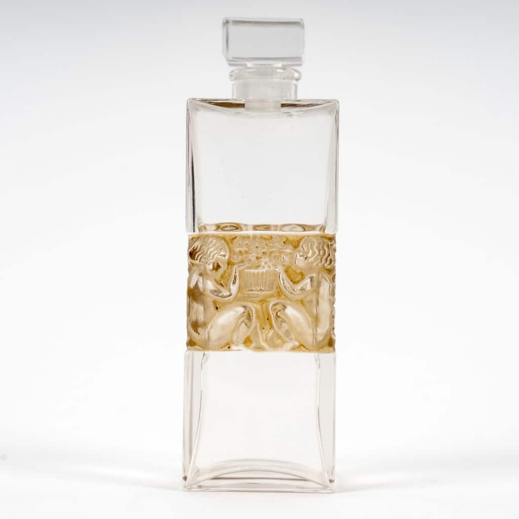 Flacon à Parfum « 5 Fleurs » en verre blanc patiné sépia de René Lalique créé en 1929 pour Forvil.