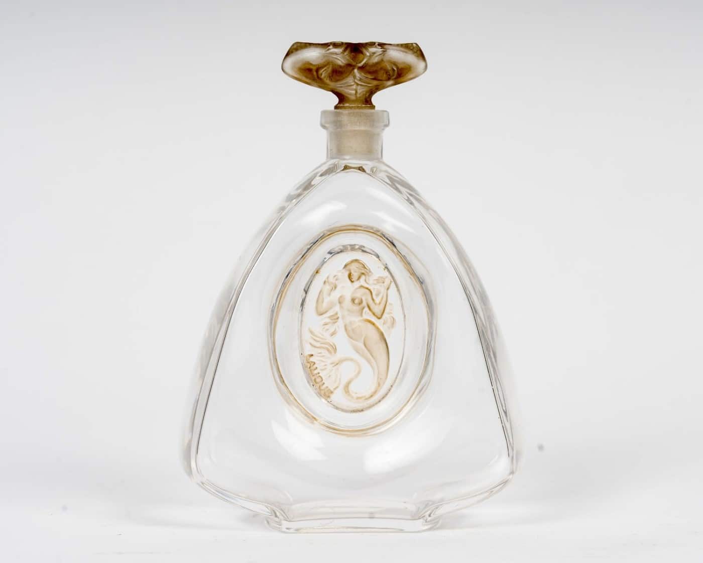 Flacon à Parfum « La Sirène » en verre blanc patiné sépia de René Lalique créé en 1912 pour Burmann.