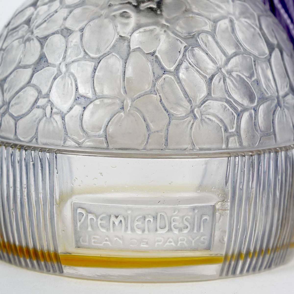 Flacon « Premier Désir » en verre blanc patiné bleu de René Lalique pour Jean de Parys créé en 1926