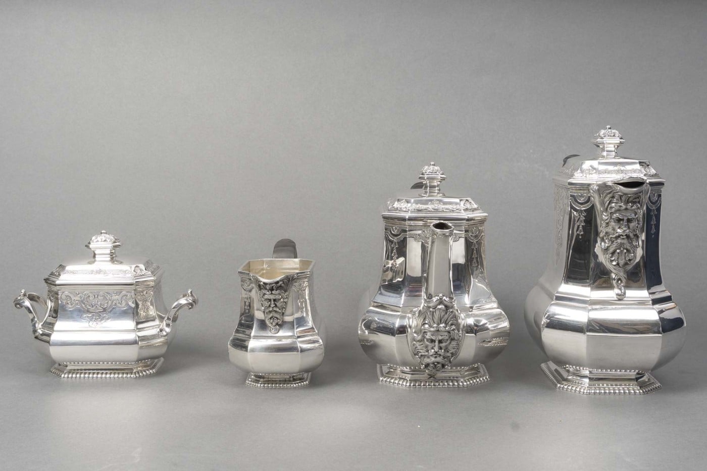FOUQUET-LAPAR – Service à thé et café en argent massif 4 pièces XIXe