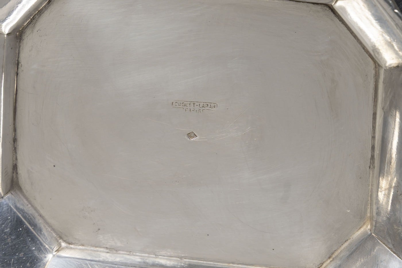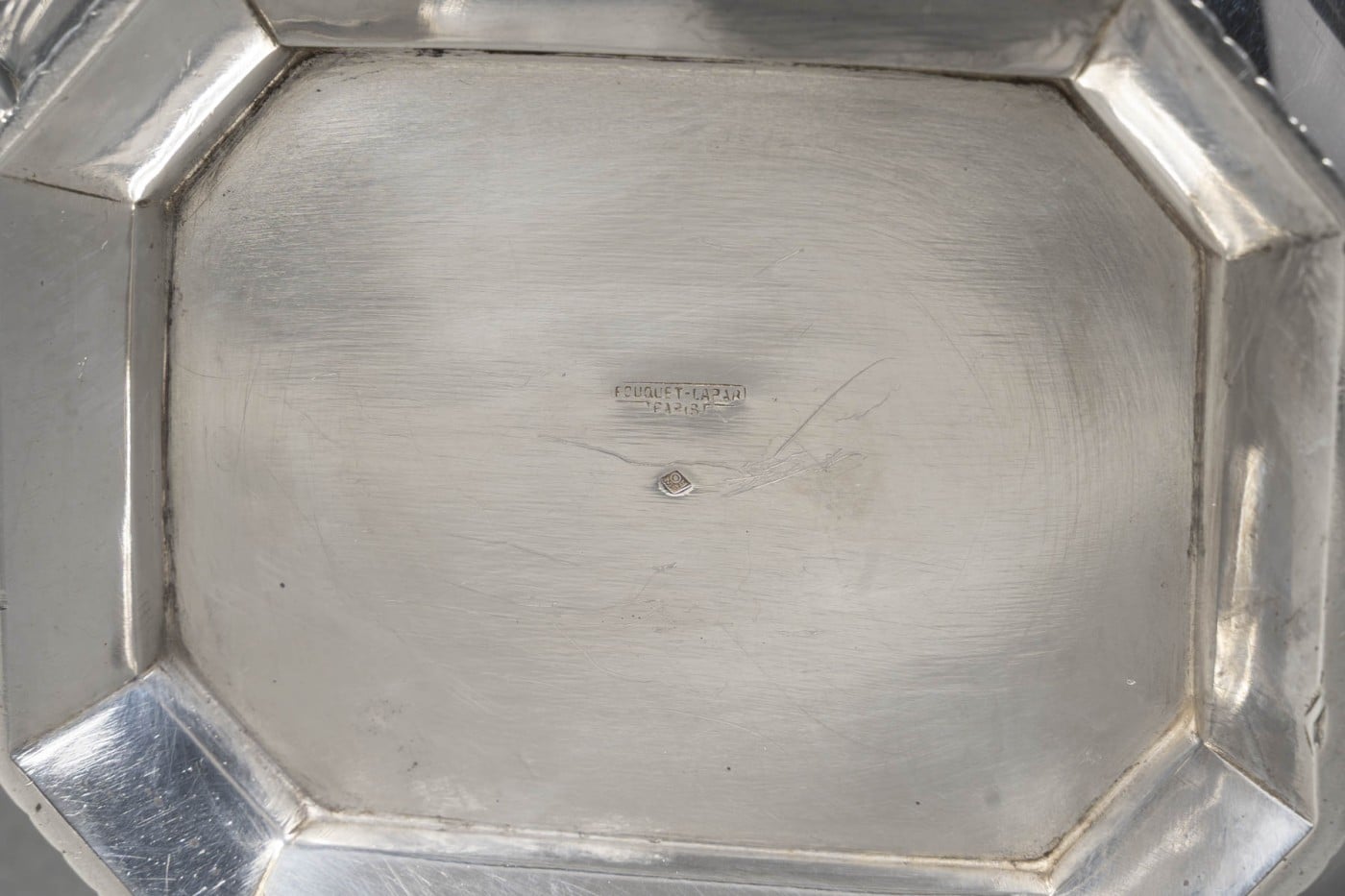Chaque pièce porte les poinçons d’argent massif français ainsi que le poinçon d’orfèvre Fouquet Lapar. Ce service témoigne du haut niveau de maîtrise orfèvre parisien au XIXᵉ siècle, alliant rigueur architecturale et décor raffiné, dans un style à la fois sobre et majestueux.