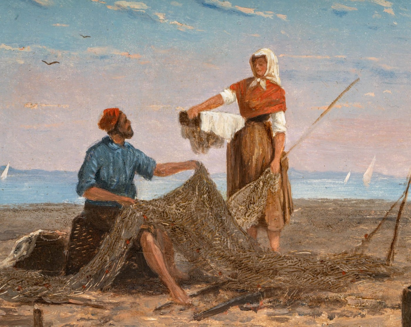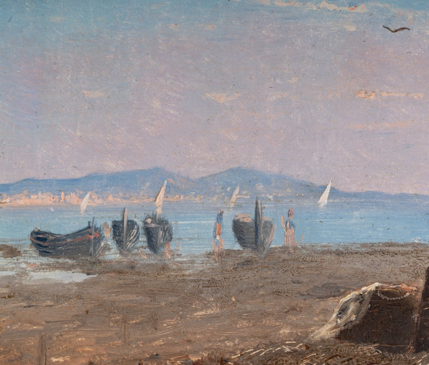 C’est à l’occasion de son séjour avec son père vers 1863 que ce tableau a été imaginé et peint. Une belle composition qui sublime la vie des pêcheurs Italiens dans ce milieu du XIXème siècle et nous donne à rêver à ces paysages baignés de lumière.