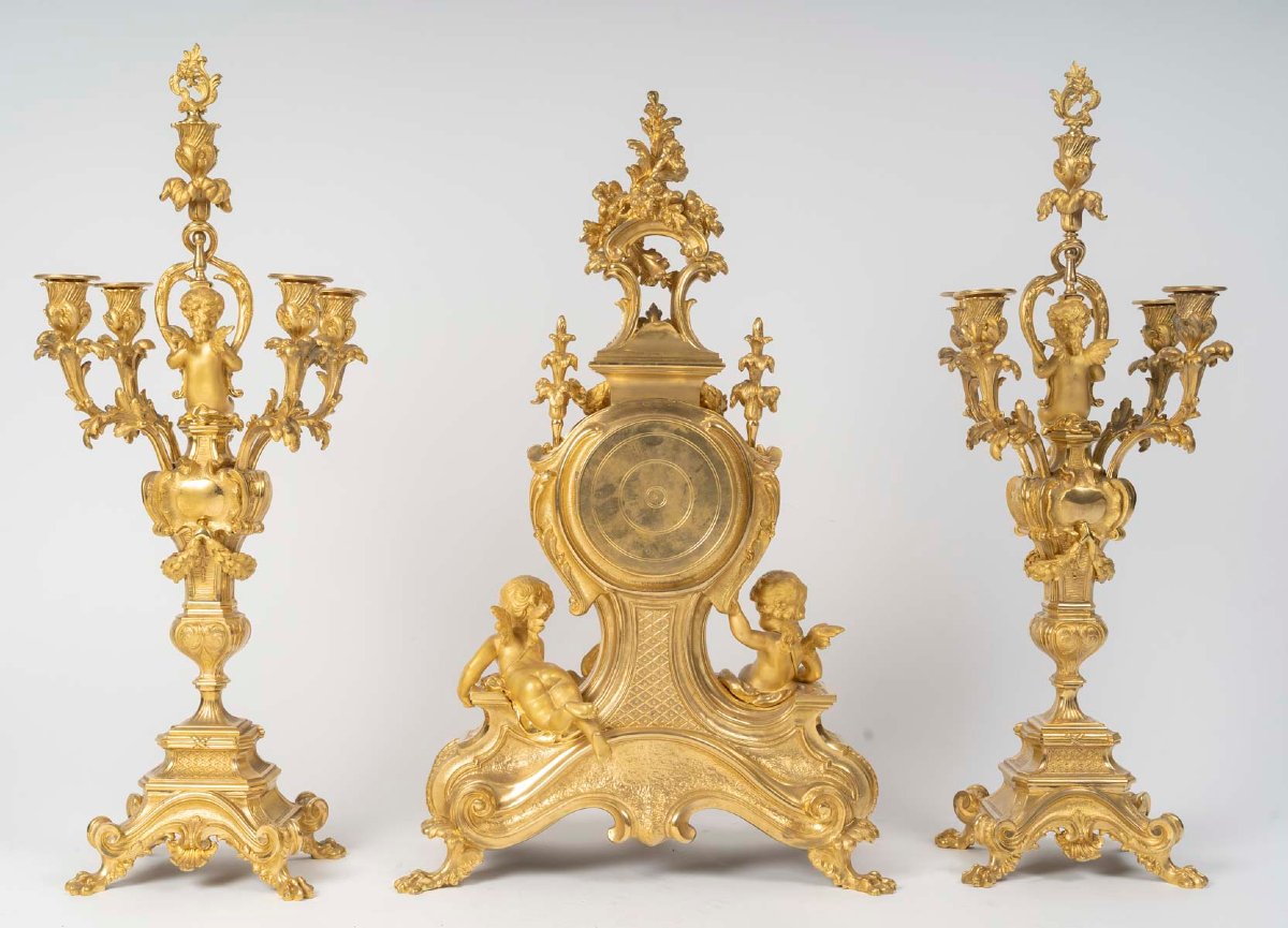 Garniture de cheminée en bronze doré – Style Louis XV – Époque Napoléon III