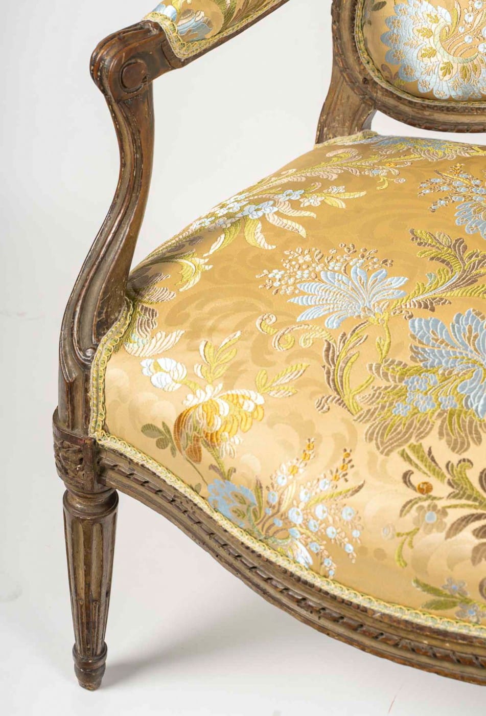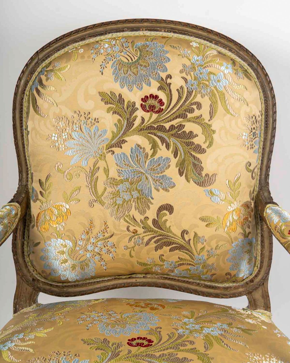 Our Transition period armchair, stamped by Georges Jacob (who became a master craftsman in 1765), exemplifies the seamless blend of Louis XV grace and Louis XVI restraint.