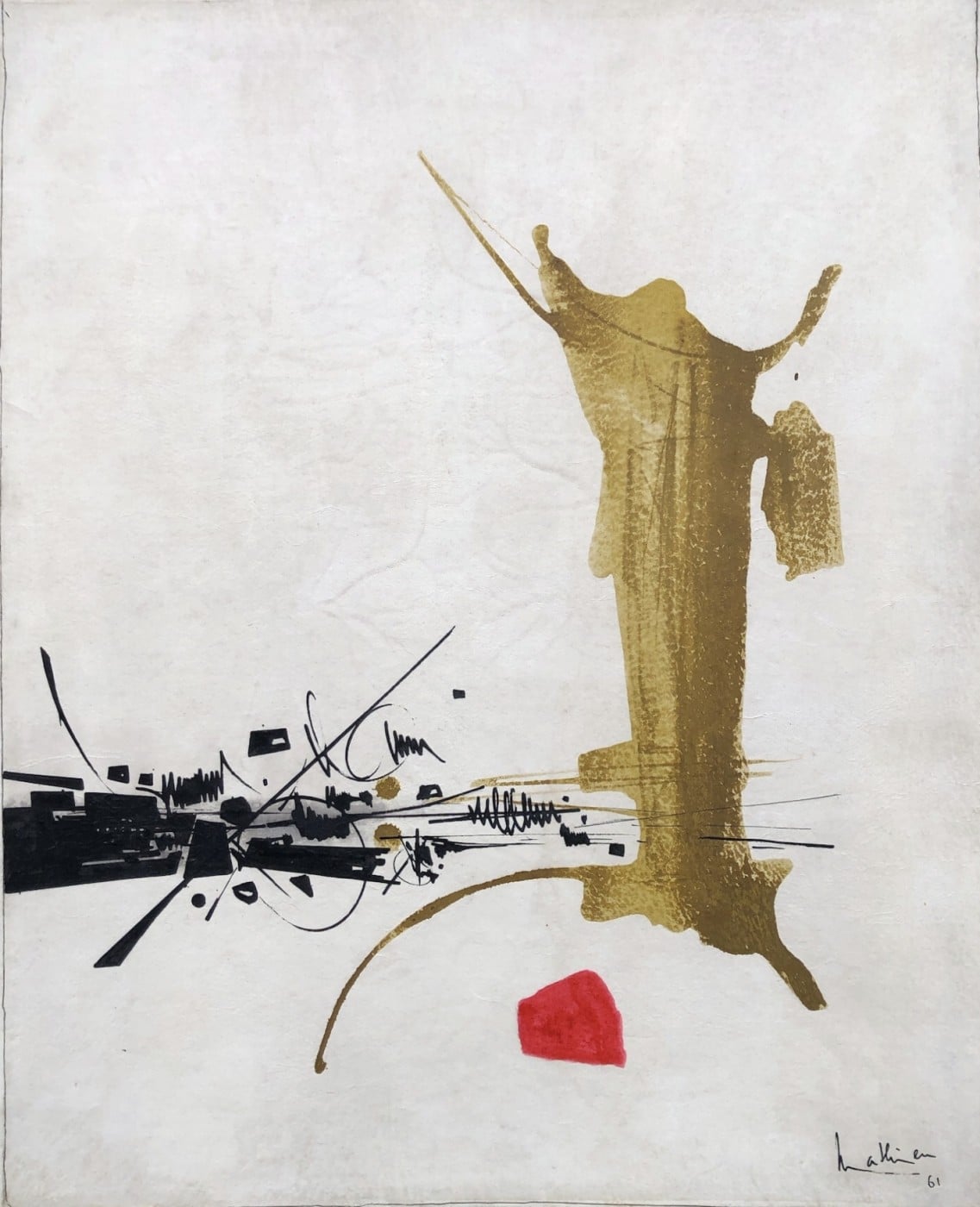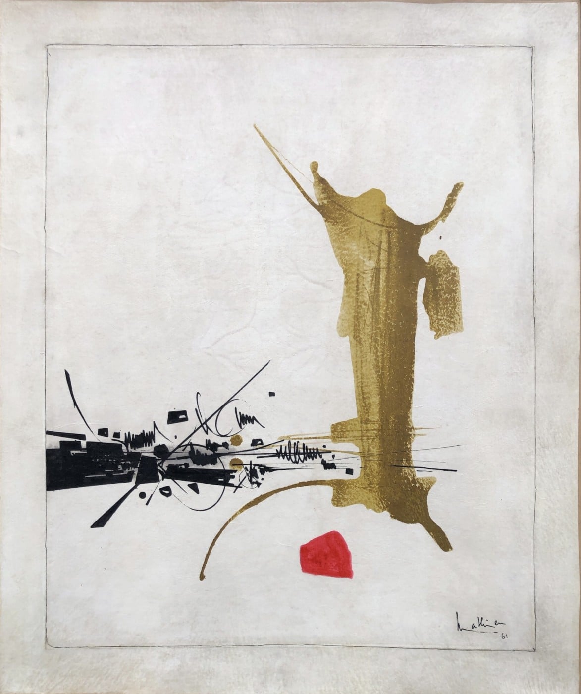 Huile sur papier parchemin signé et daté 1961 en bas à droite.