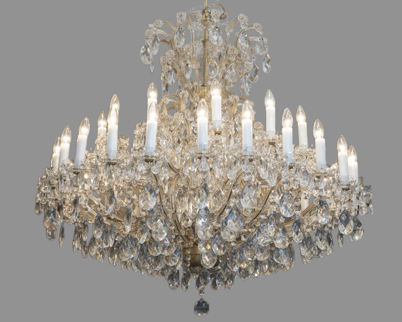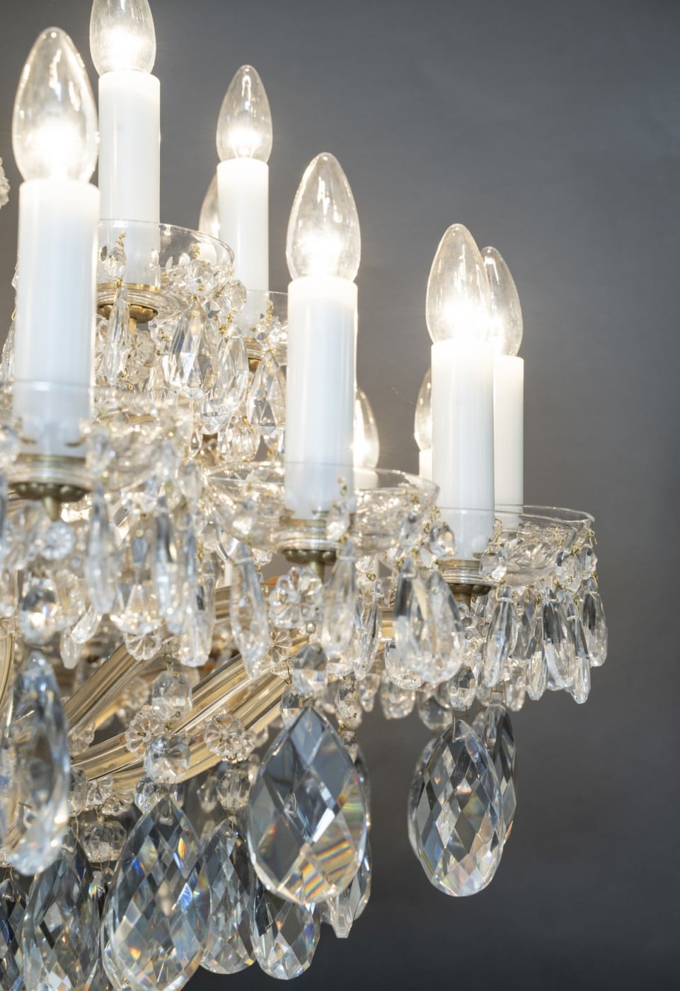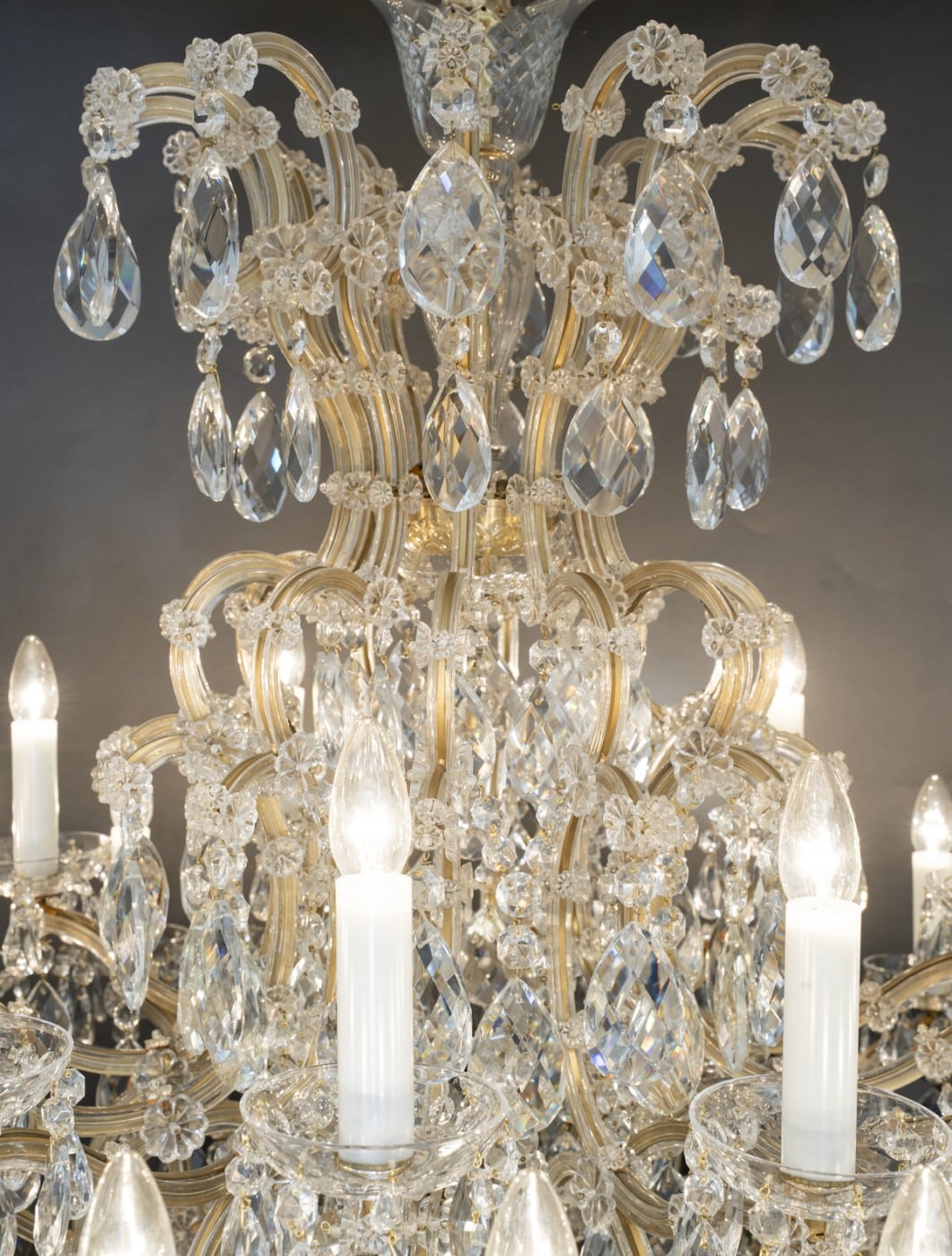 Important Lustre Marie Thérèse comportant 36 bras de lumière sur deux rangées, à pampilles en cristal. Circa 1970 / 80.