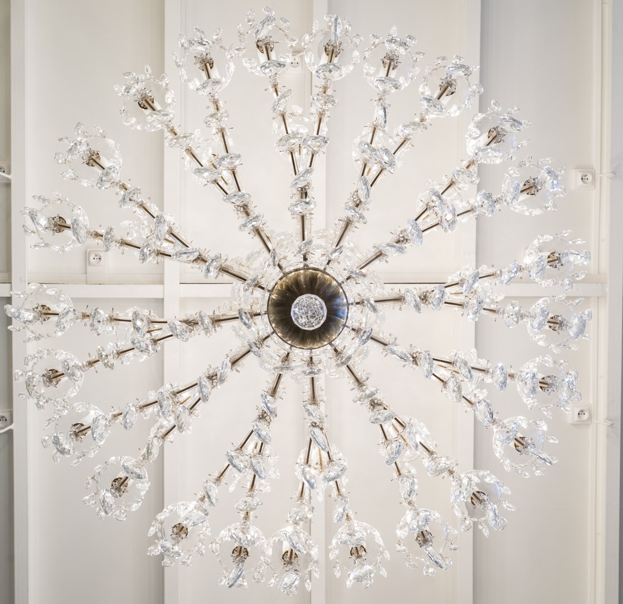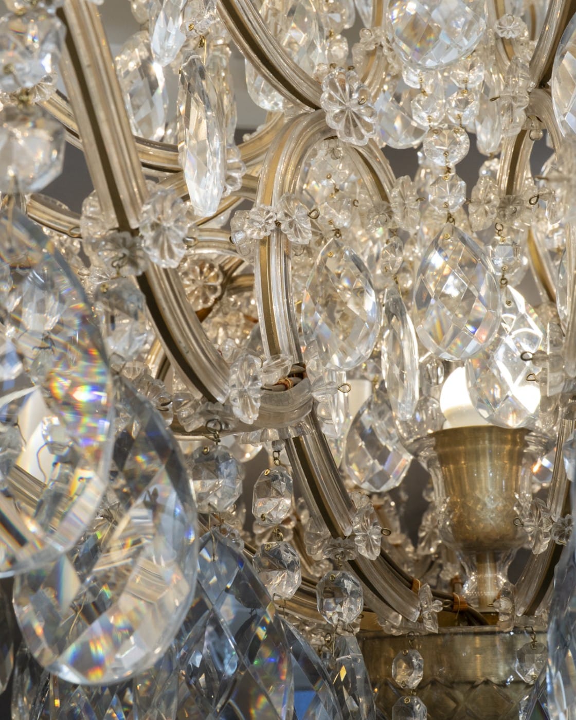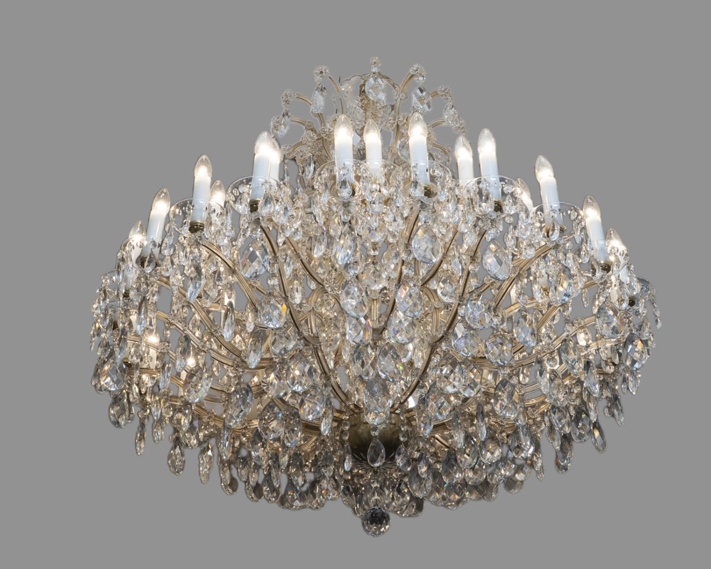 Important Lustre Marie Thérèse comportant 36 bras de lumière sur deux rangées, à pampilles en cristal. Circa 1970 / 80.