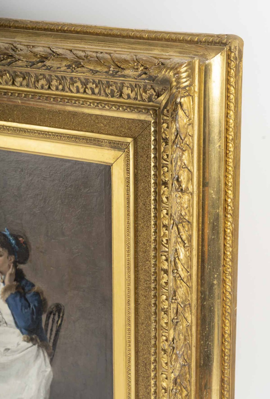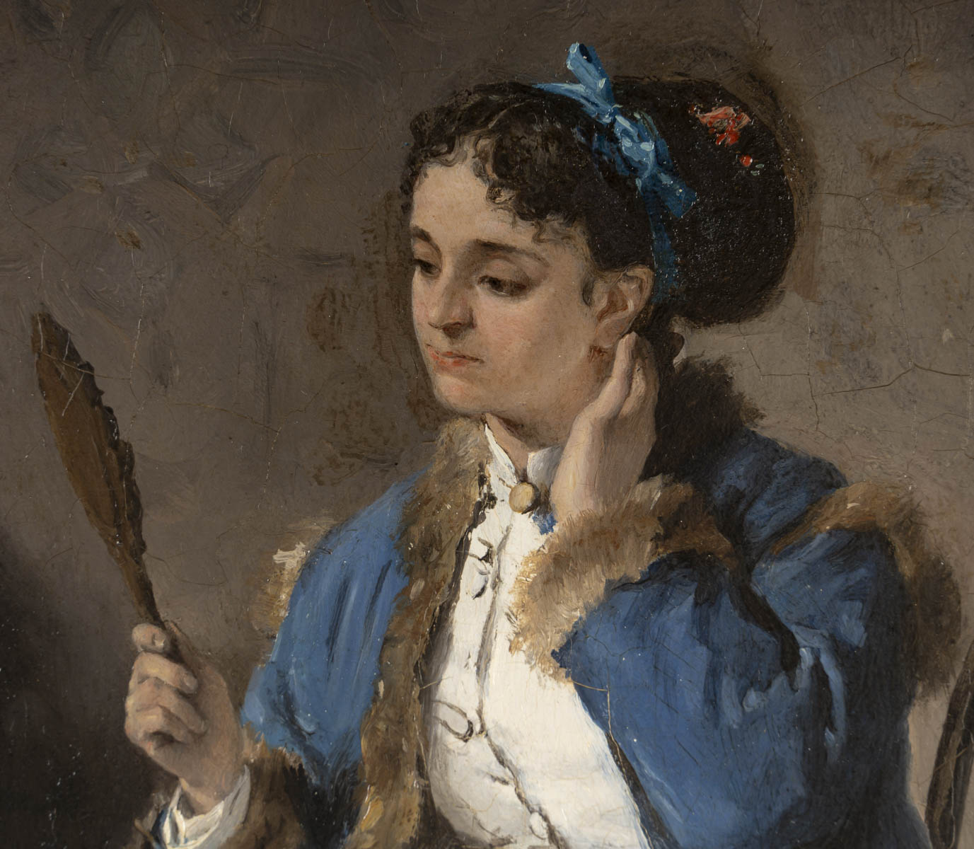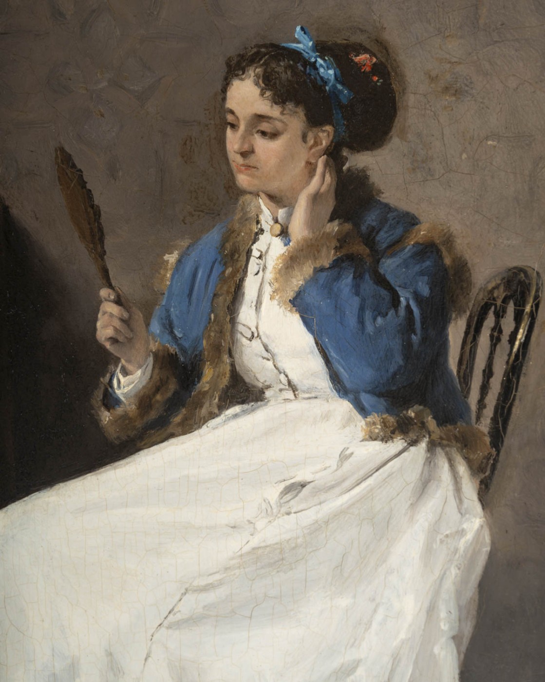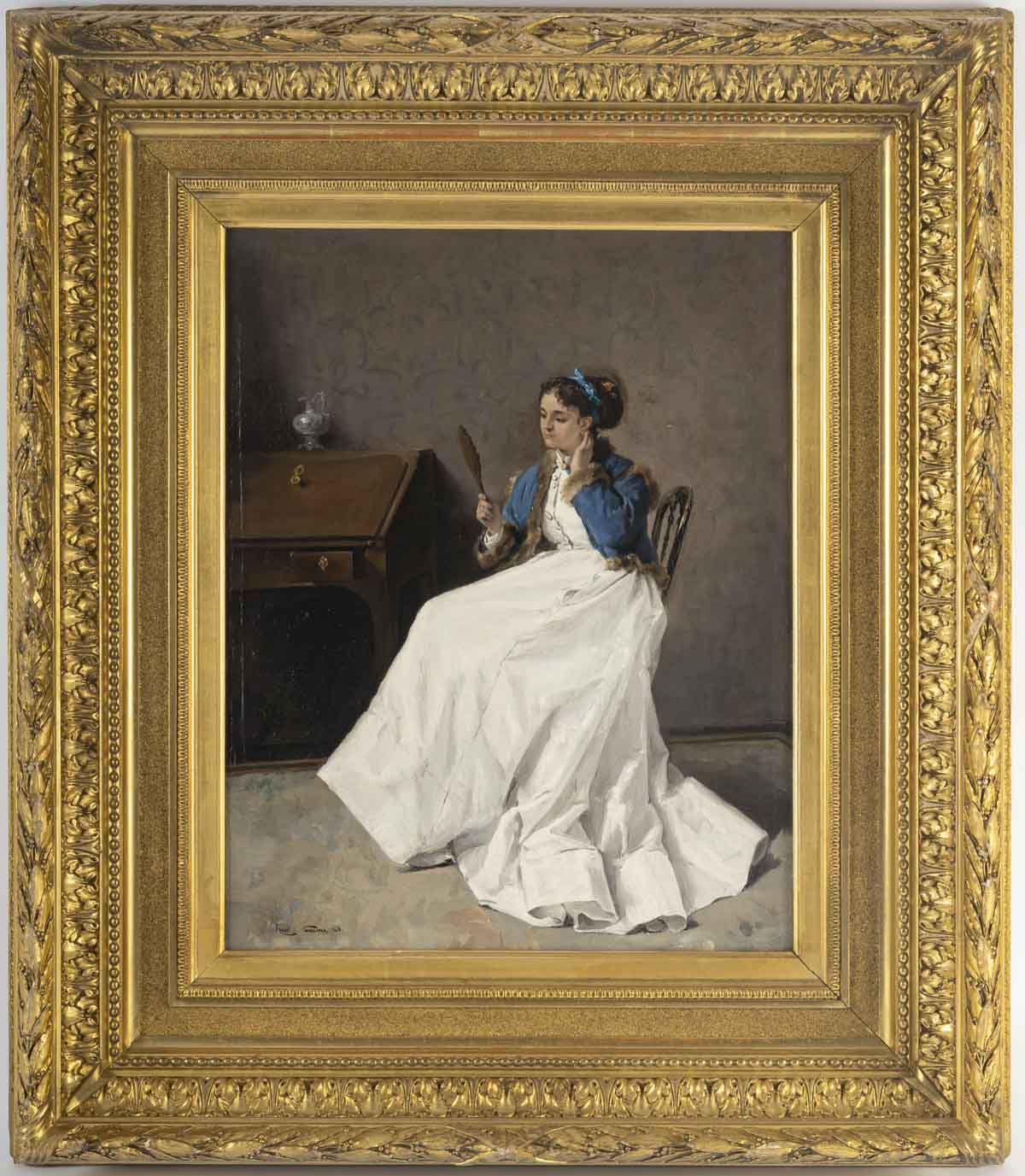 Henri-René Gaume met en scène ici une femme se regardant dans un miroir.