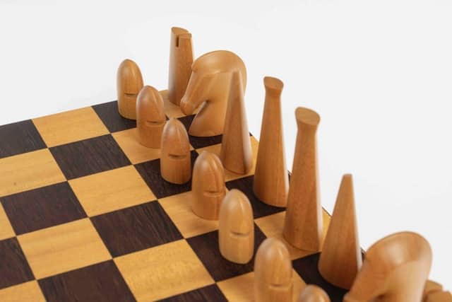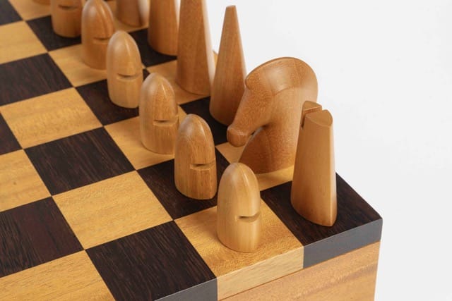 – Pions en acajou naturel et cassia massifs et signés d’un lest en inox gravé d’un Clou de Selle