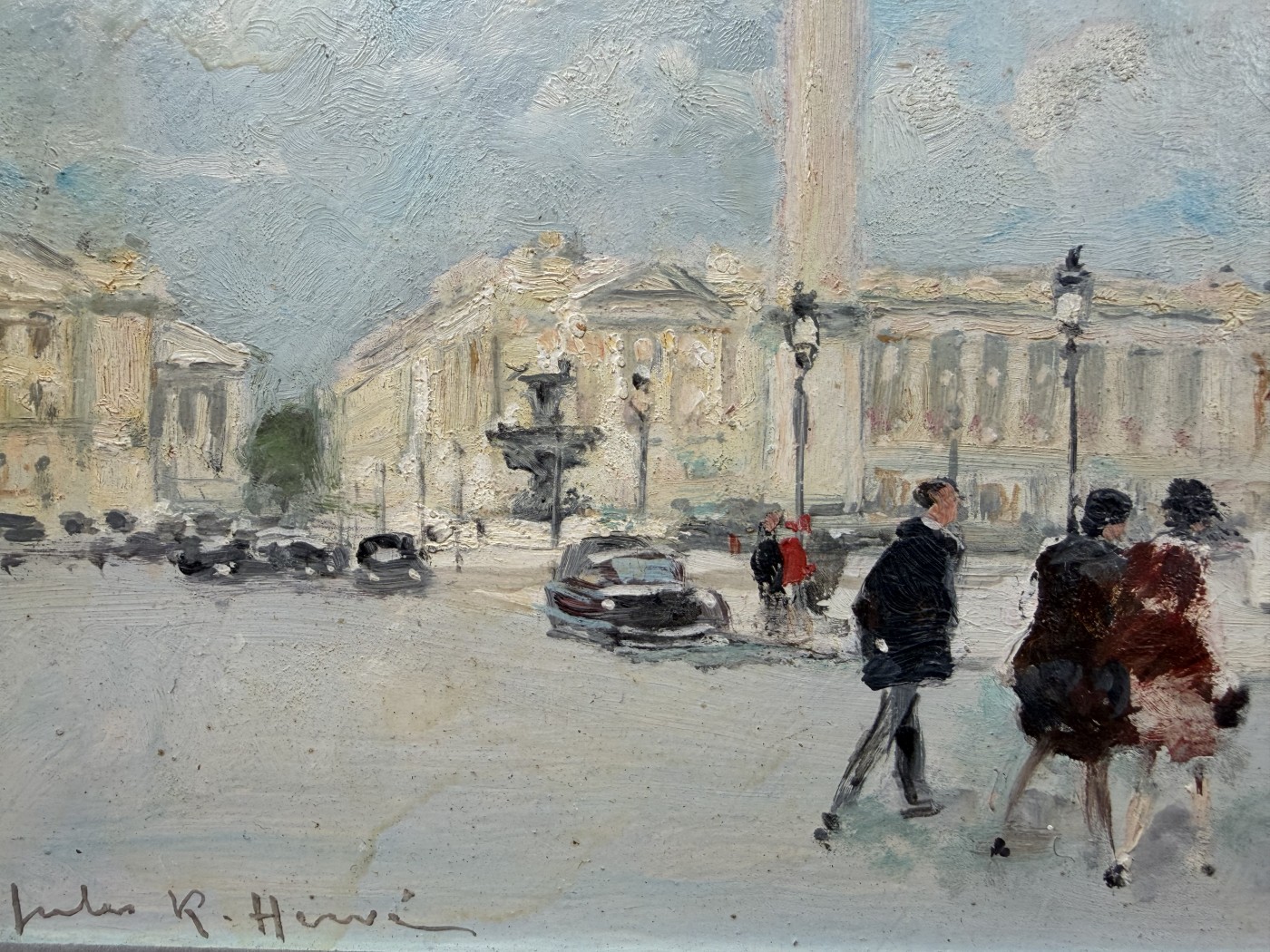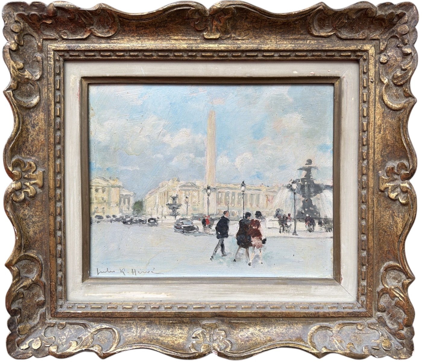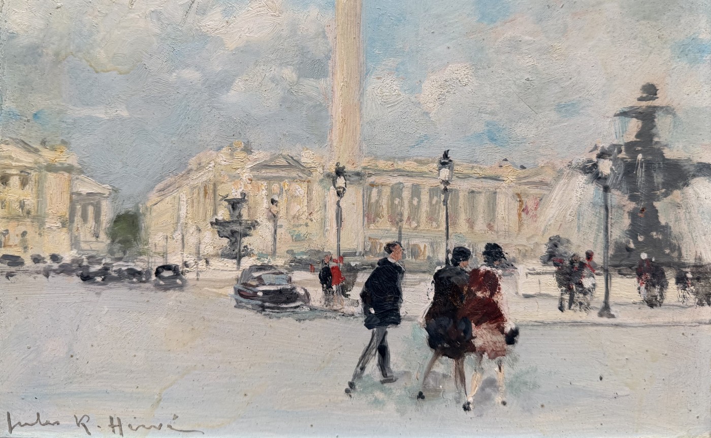 Musées : Annecy , Calais , Casablanca , Chicago , Dijon , Langres , Luxeuil-Les-Bains , Montreal , New York , Paris , Saint-Etienne , Tourcoing , Troyes . Littérature : Bénézit – Dictionnaire des petits maîtres de la peinture par Gérald Schurr et Pierre Cabanne – « Jules rené Hervé un maître enchanteur de la peinture du 20ème siècle » par Bernard Masson – « Le haut du pavé de Langres » par Gérard Gueniot – Le peintre et l’animal en France au 19ème siècle par Elisabeth Hardouin-Fugier – Jules René HERVE, Né à Langres ( Haute-Marne ) en 1887, Mort à Langres en 1981 Peintre de scènes typiques , figures , portraits , paysages . Elève de Fernand Cormon et de Jules Adler , Jules René Hervé s’installe à Paris et commence à exposer au Salon des Artistes Français en 1910 , Jules René Hervé y reçoit une médaille d’argent en 1914 et une médaille d’or en 1925 .Puis Jules René Hervé partage sa vie entre Paris et sa ville natale dont il peint , d’un pinceau léger , expert en petits éclats vifs sur des gris ou des ocres habilement répartis , les évènements humbles et pittoresques , les portraits de son austère société à l’existence monotone et feutrée – Mais Jules René Hervé sait tout aussi bien restituer l’atmosphère animée de la vie Parisienne et ses monuments ou les danseuses au foyer de l’Opéra -De ses compositions finement observées émanent de délicats sentiments – Apprécié des amateurs français et étrangers , Jules René Hervé s »est adonné à son art tout au long de sa vie -Jules René Hervé est considéré comme « le dernier des impressionnistes »