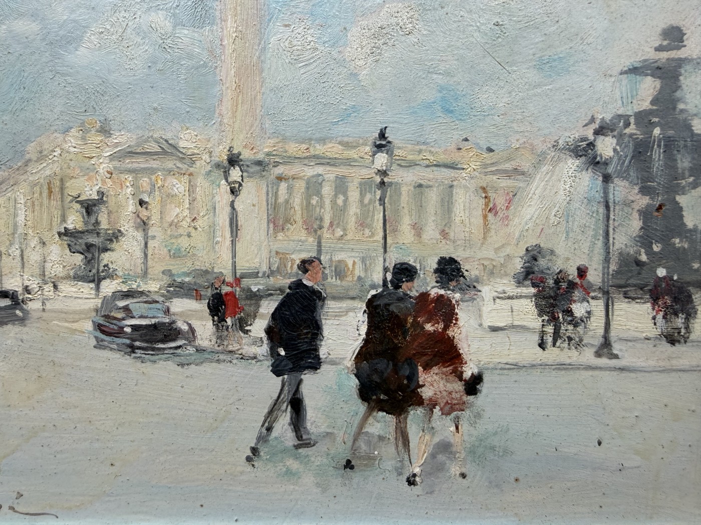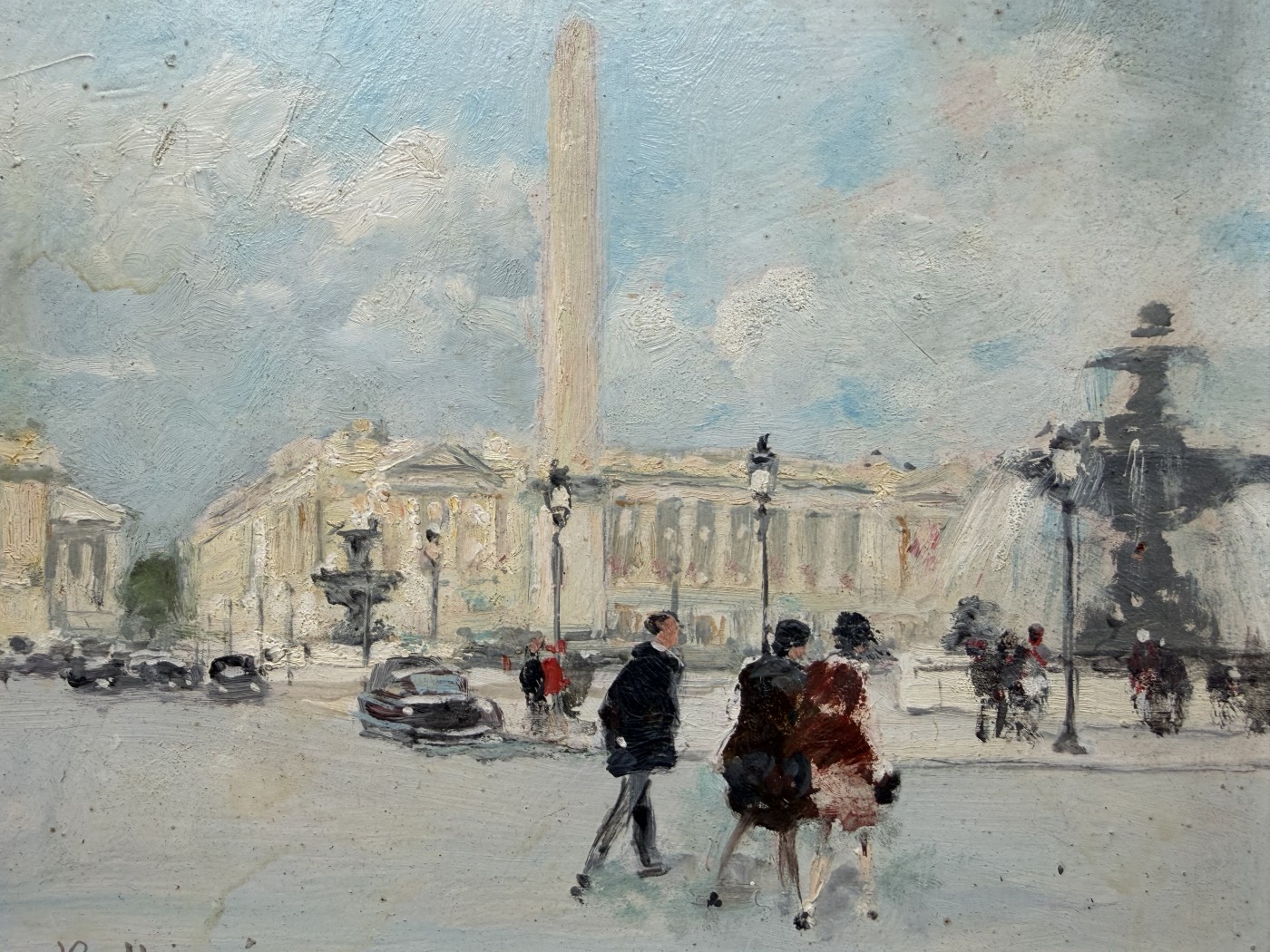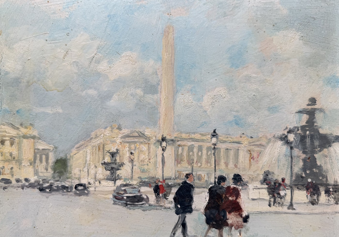 Huile sur carton fort signée en bas à gauche, contresignée au dos.