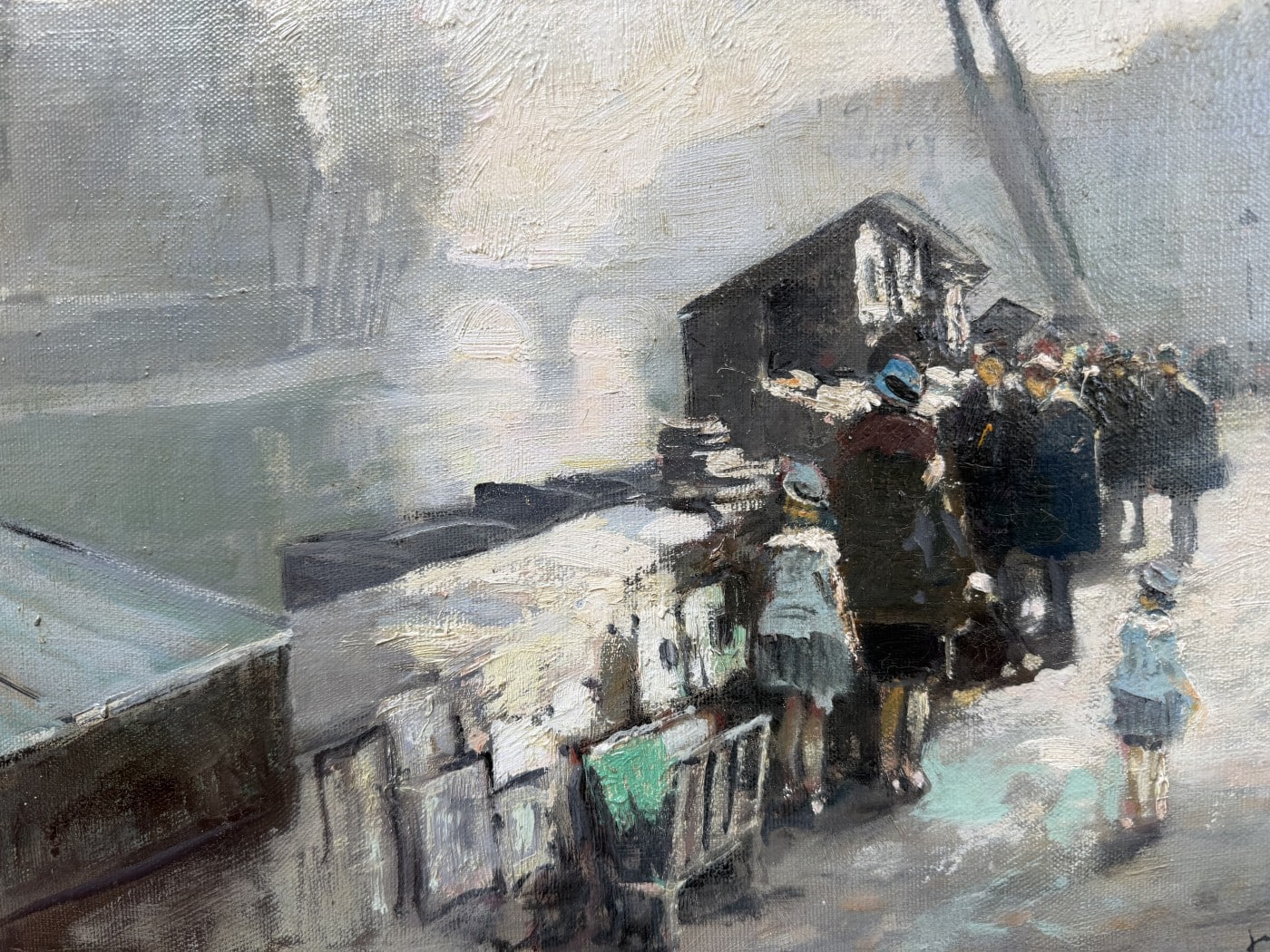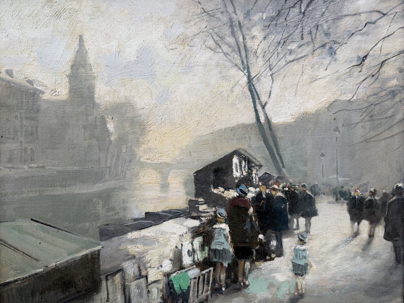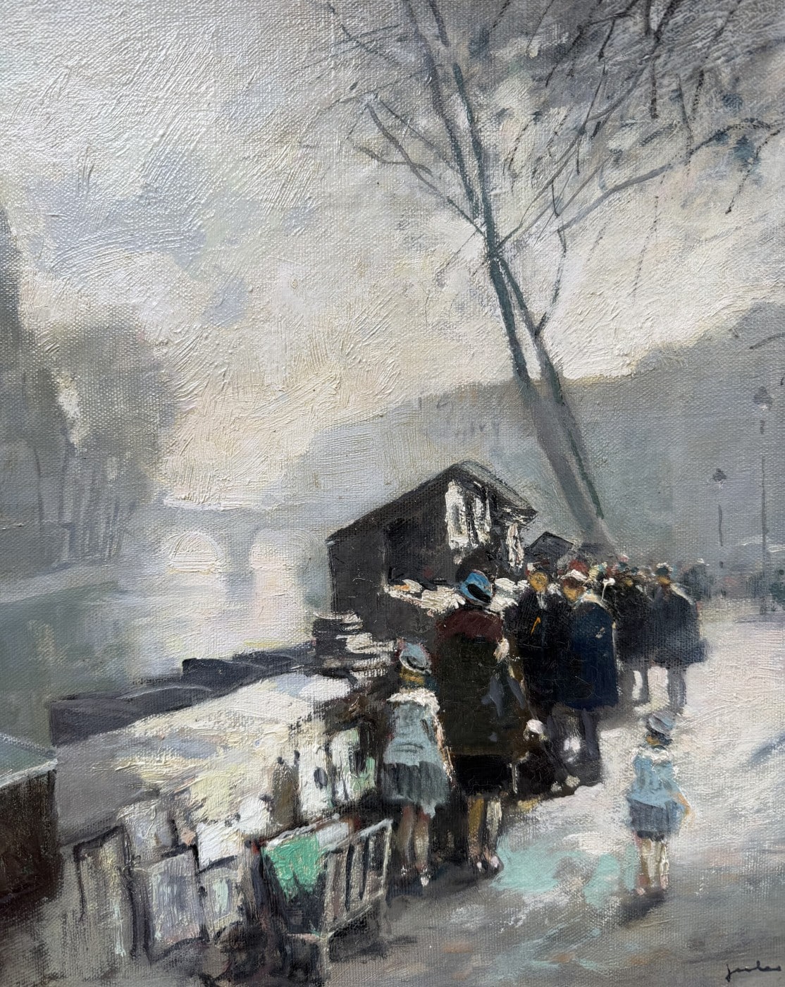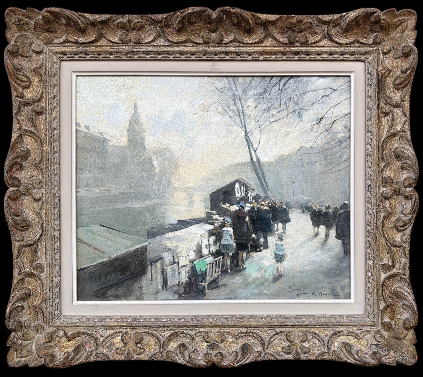 Jules René HERVE, Né à Langres ( Haute-Marne ) en 1887, Mort à Langres en 1981 Peintre de scènes typiques , figures , portraits , paysages . Elève de Fernand Cormon et de Jules Adler , Jules René Hervé s’installe à Paris et commence à exposer au Salon des Artistes Français en 1910 , Jules René Hervé y reçoit une médaille d’argent en 1914 et une médaille d’or en 1925 .Puis Jules René Hervé partage sa vie entre Paris et sa ville natale dont il peint , d’un pinceau léger , expert en petits éclats vifs sur des gris ou des ocres habilement répartis , les évènements humbles et pittoresques , les portraits de son austère société à l’existence monotone et feutrée – Mais Jules René Hervé sait tout aussi bien restituer l’atmosphère animée de la vie Parisienne et ses monuments ou les danseuses au foyer de l’Opéra -De ses compositions finement observées émanent de délicats sentiments – Apprécié des amateurs français et étrangers , Jules René Hervé s »est adonné à son art tout au long de sa vie -Jules René Hervé est considéré comme « le dernier des impressionnistes »