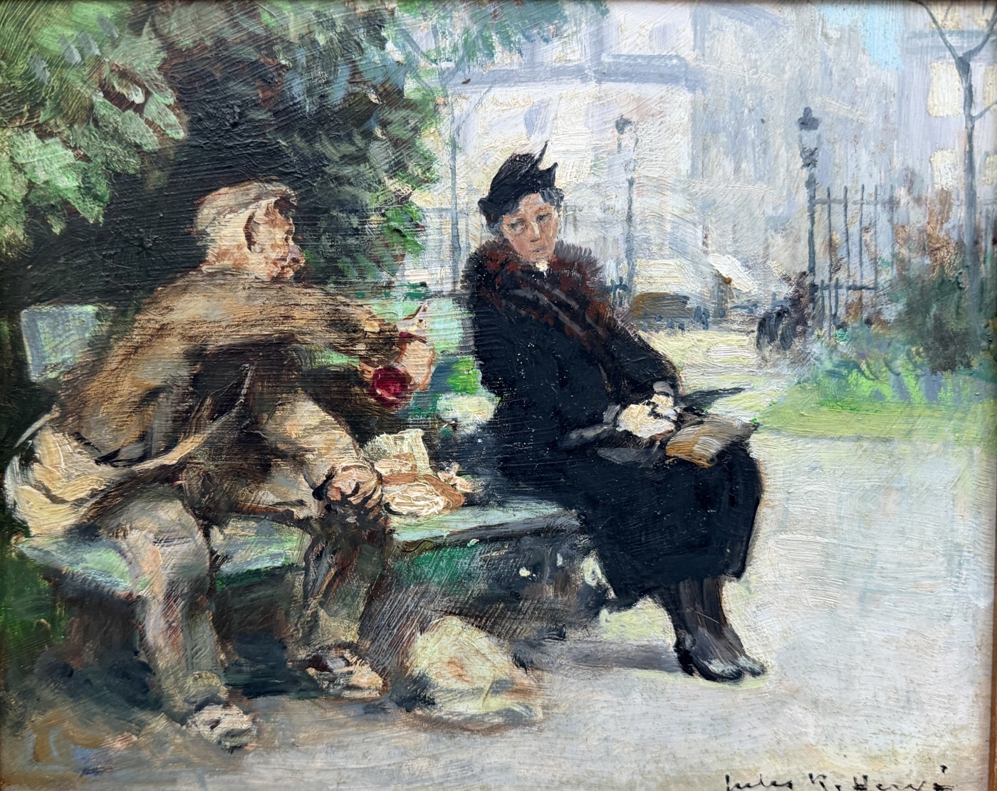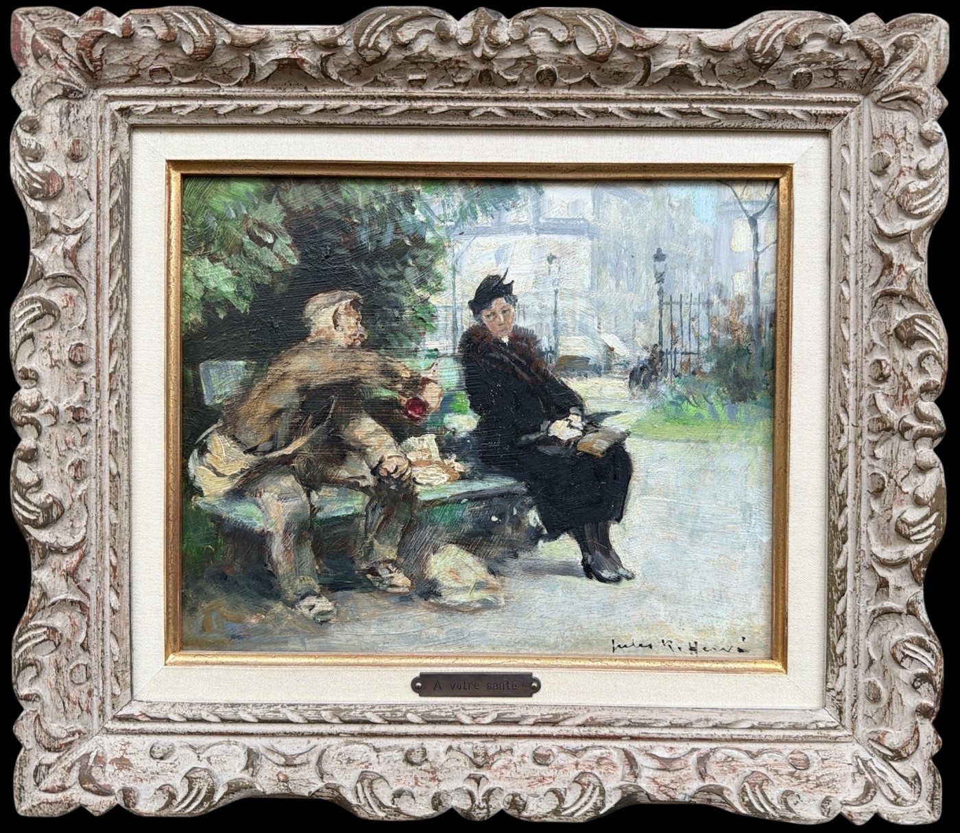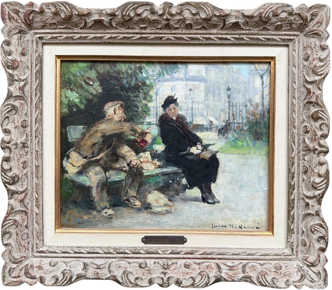 Peintre de scènes typiques , figures , portraits , paysages . Elève de Fernand Cormon et de Jules Adler , Jules René Hervé s’installe à Paris et commence à exposer au Salon des Artistes Français en 1910 , Jules René Hervé y reçoit une médaille d’argent en 1914 et une médaille d’or en 1925 .Puis Jules René Hervé partage sa vie entre Paris et sa ville natale dont il peint , d’un pinceau léger , expert en petits éclats vifs sur des gris ou des ocres habilement répartis , les évènements humbles et pittoresques , les portraits de son austère société à l’existence monotone et feutrée – Mais Jules René Hervé sait tout aussi bien restituer l’atmosphère animée de la vie Parisienne et ses monuments ou les danseuses au foyer de l’Opéra -De ses compositions finement observées émanent de délicats sentiments – Apprécié des amateurs français et étrangers , Jules René Hervé s »est adonné à son art tout au long de sa vie -Jules René Hervé est considéré comme « le dernier des impressionnistes » violondingres.fr