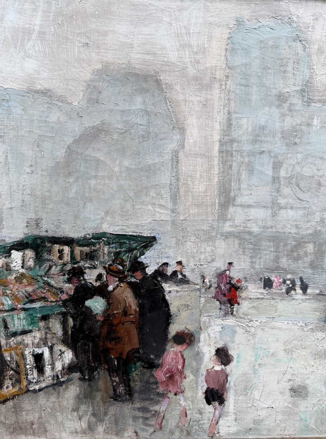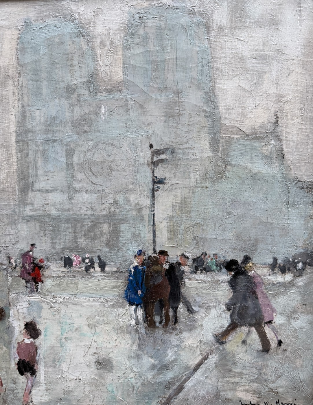 Peintre de scènes typiques , figures , portraits , paysages . Elève de Fernand Cormon et de Jules Adler , Jules René Hervé s’installe à Paris et commence à exposer au Salon des Artistes Français en 1910 , Jules René Hervé y reçoit une médaille d’argent en 1914 et une médaille d’or en 1925 .Puis Jules René Hervé partage sa vie entre Paris et sa ville natale dont il peint , d’un pinceau léger , expert en petits éclats vifs sur des gris ou des ocres habilement répartis , les évènements humbles et pittoresques , les portraits de son austère société à l’existence monotone et feutrée – Mais Jules René Hervé sait tout aussi bien restituer l’atmosphère animée de la vie Parisienne et ses monuments ou les danseuses au foyer de l’Opéra -De ses compositions finement observées émanent de délicats sentiments – Apprécié des amateurs français et étrangers , Jules René Hervé s »est adonné à son art tout au long de sa vie -Jules René Hervé est considéré comme « le dernier des impressionnistes »