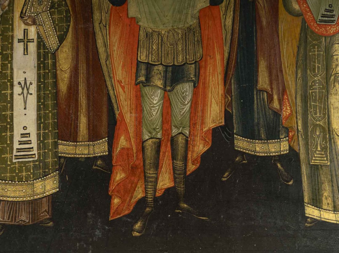 Icone russe représentant l’Archange Michel entourré de saints, d’époque XIXème siècle, Russie.