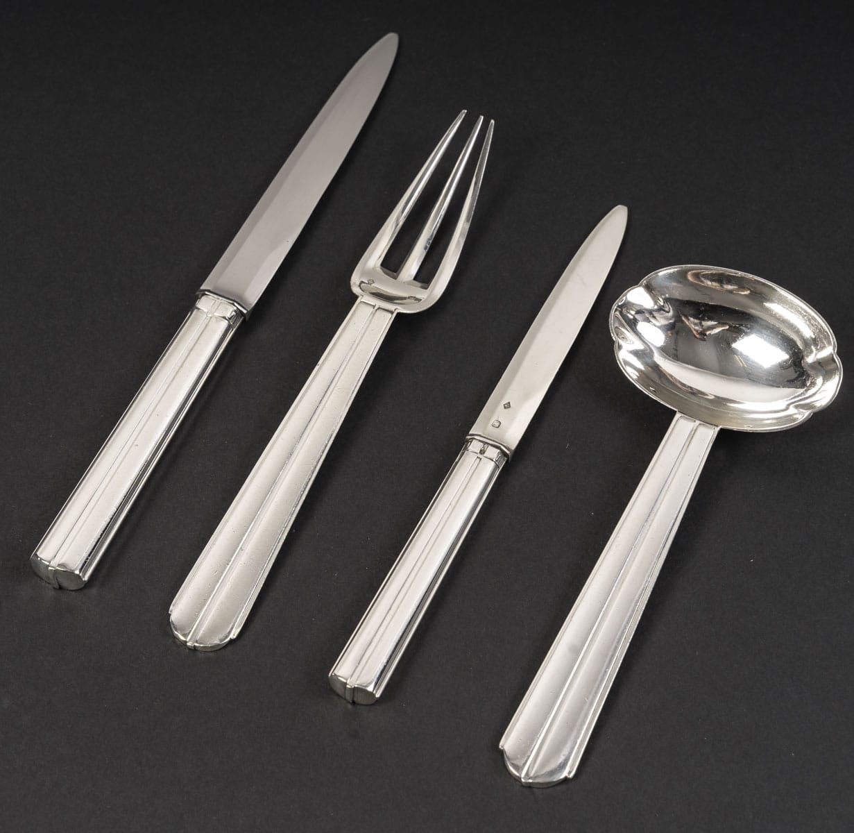 JEAN E. PUIFORCAT – Ménagère en argent massif « BIARRITZ » époque ART DECO