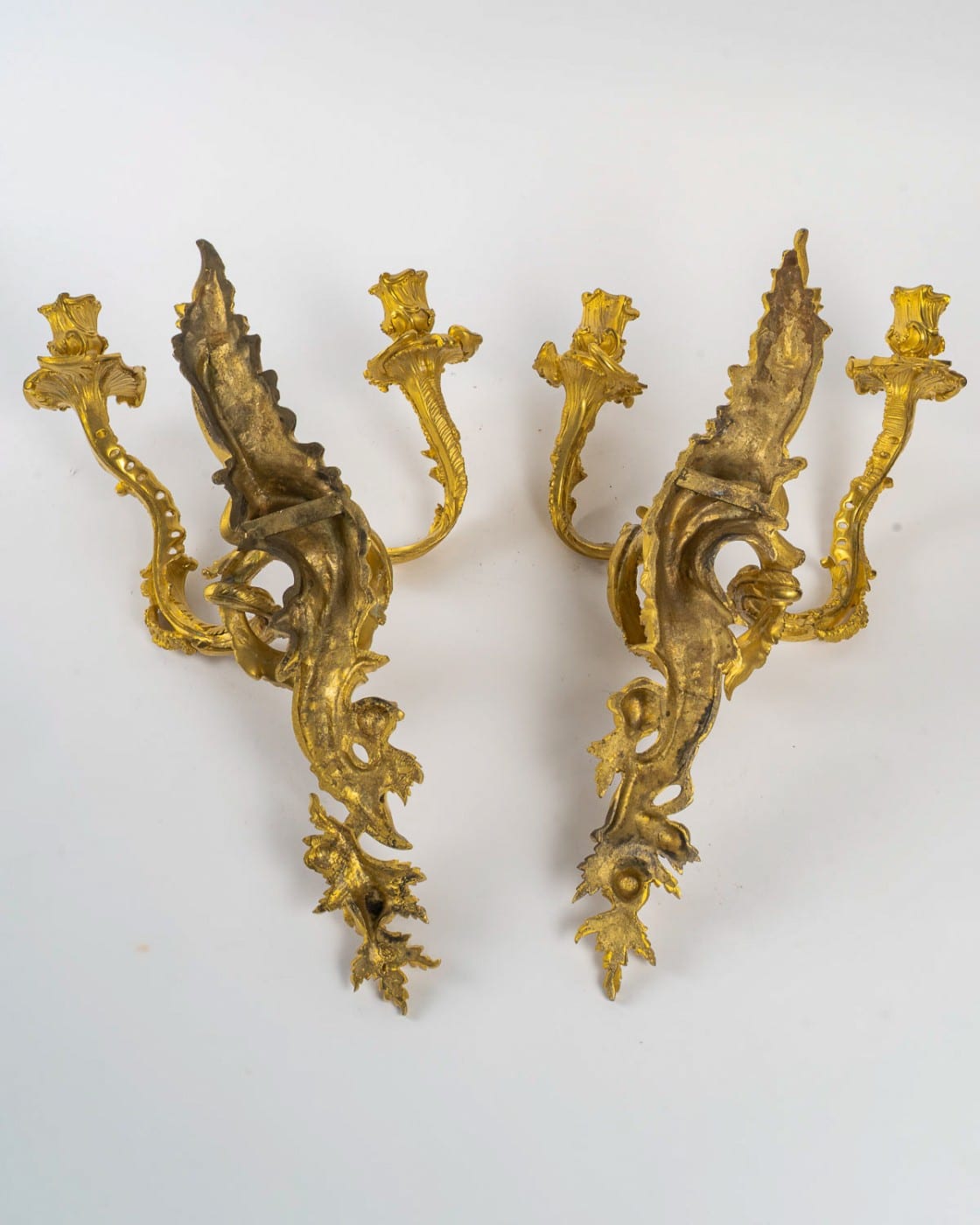 In excellent original condition, these appliqués have never been modified for electrification and retain their original gilding, a testament to their authenticity and outstanding craftsmanship.