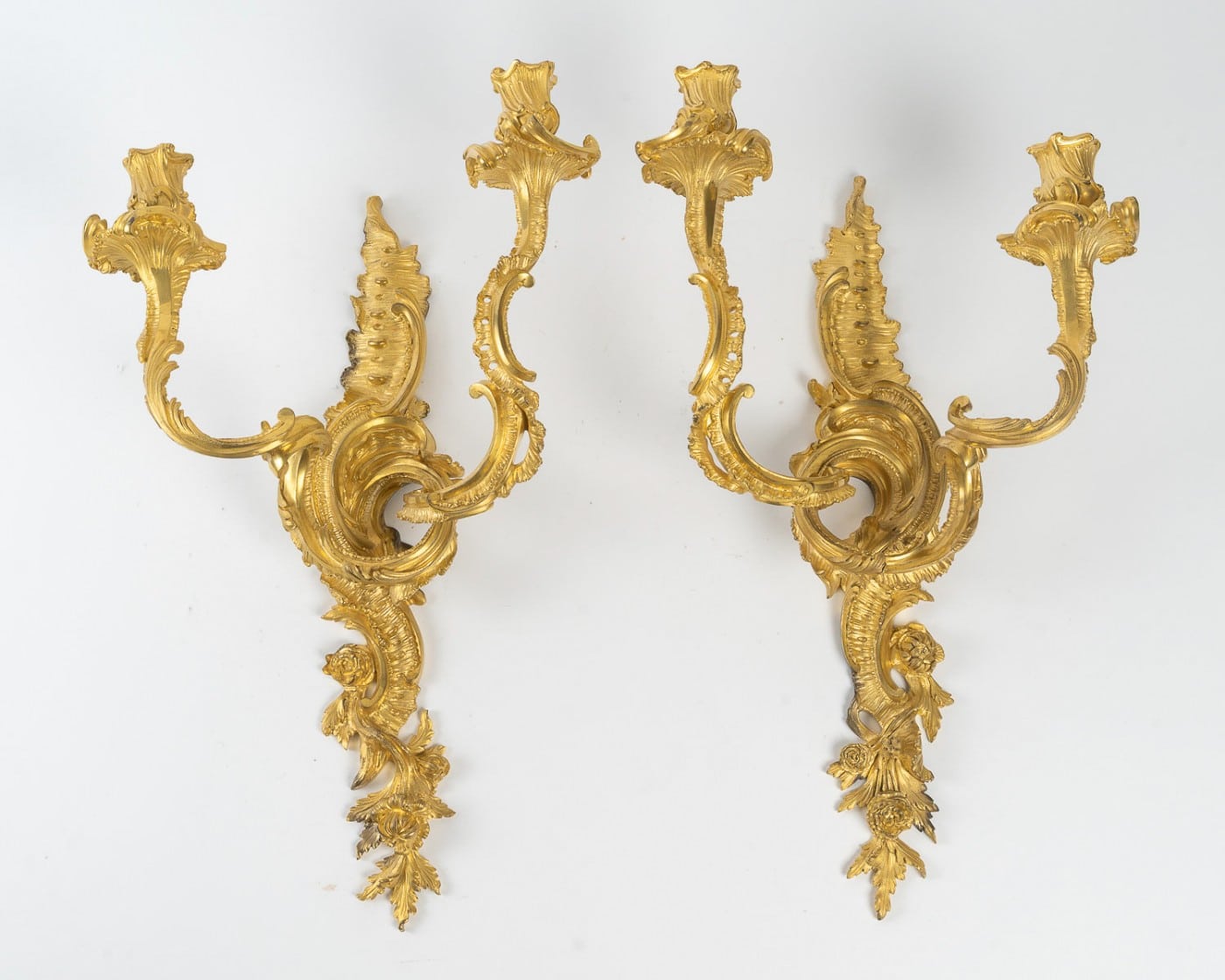 Jean-François Deniere (1774–1866) A Fine Pair of Louis XV Style Ormolu Wall Sconces, After Jacques Caffieri