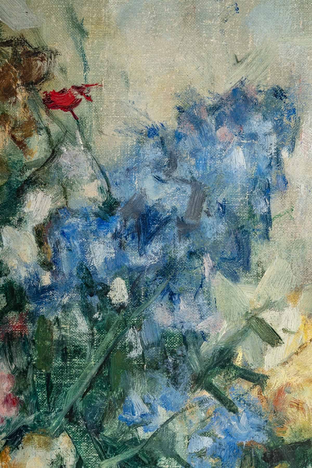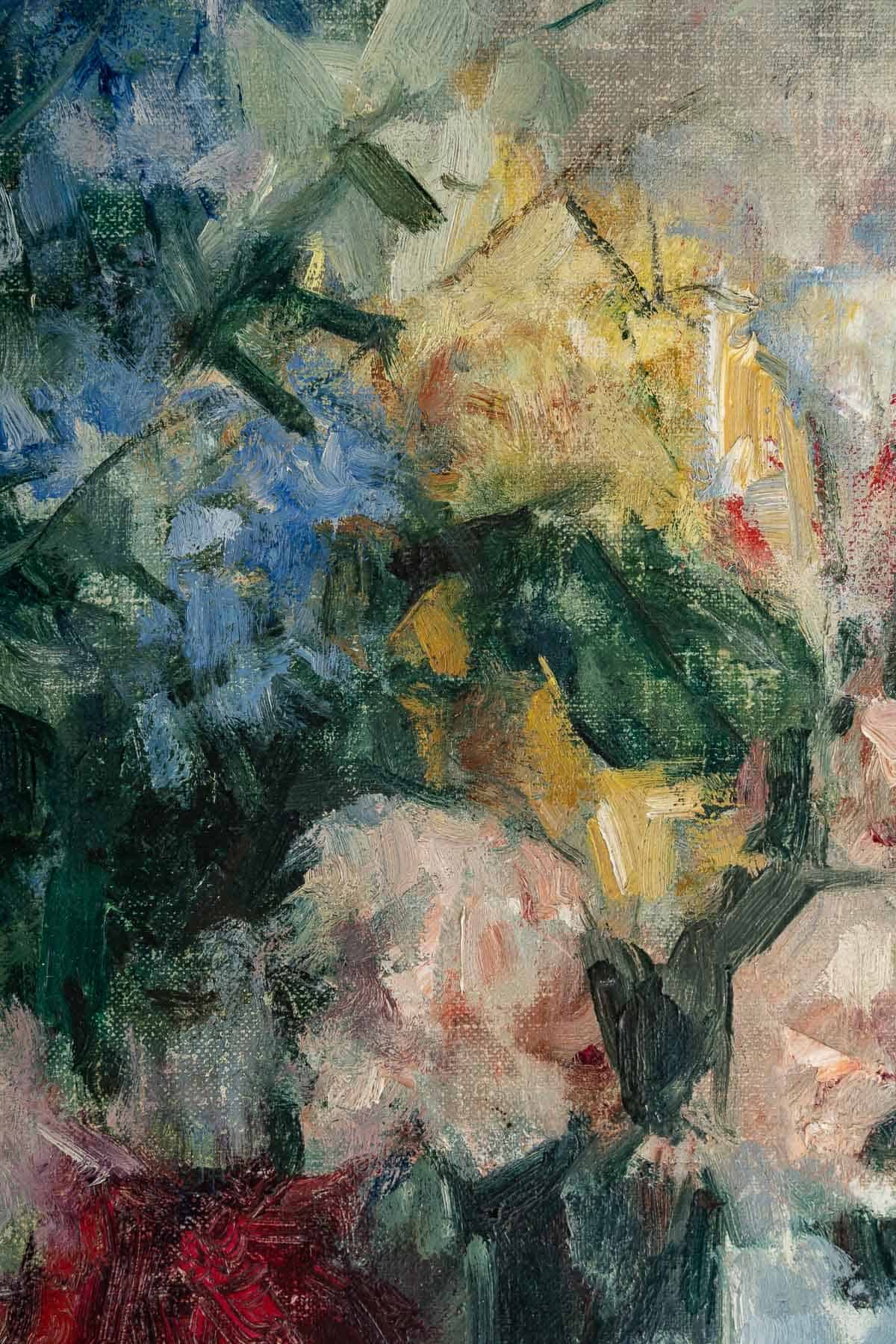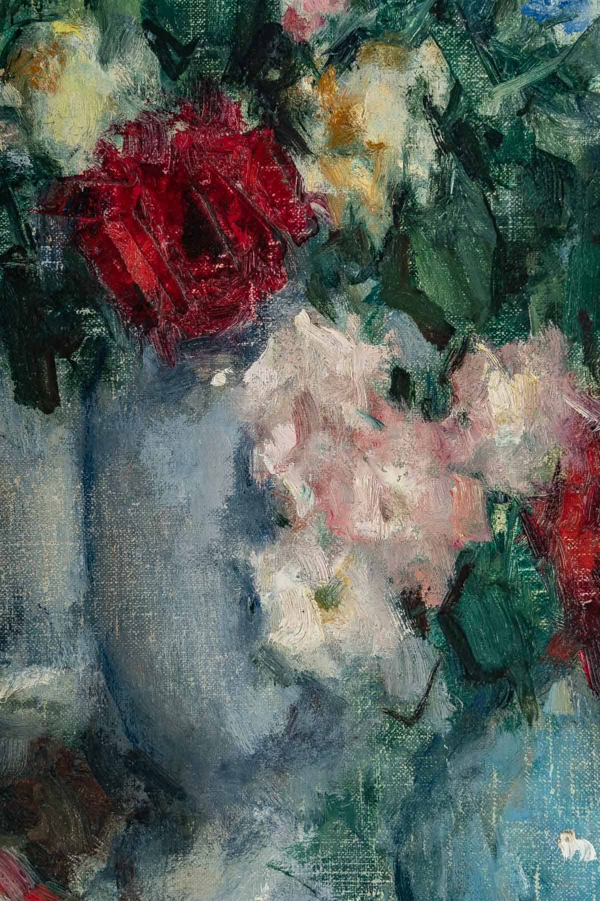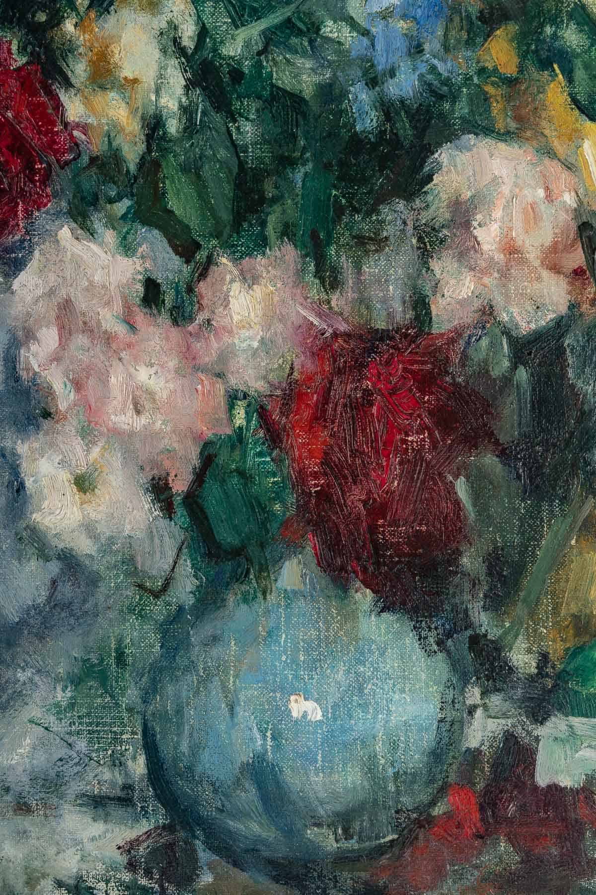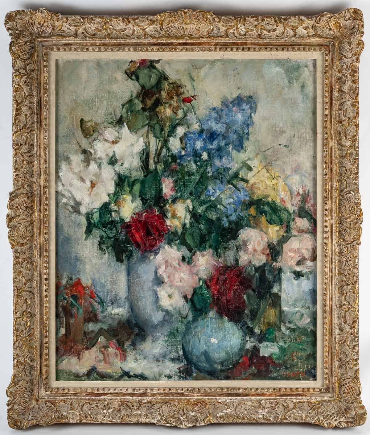 Jean Laudy appartient  au mouvement des peintres postimpressionniste, il aime marier le contraste des couleurs. Notre tableau est une composition moderniste où se juxtaposent deux bouquets de fleurs aux couleurs vives et pastel.