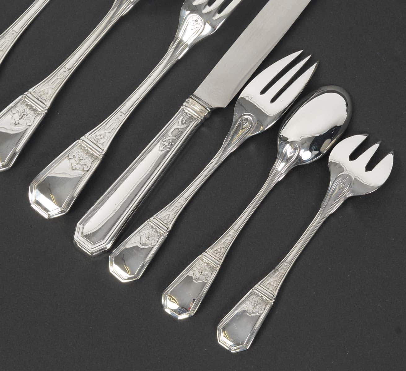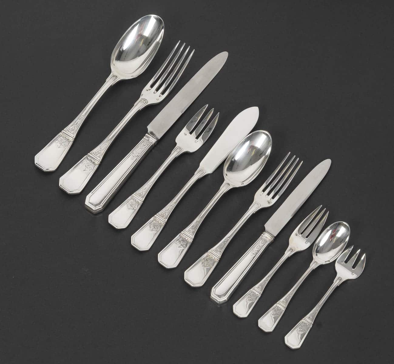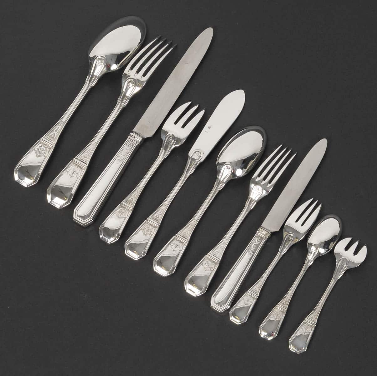JEAN TETARD – C. CHRISTOFLE MENAGERE 144 PIECES » AUBUSSON » ARGENT MASSIF Epoque 1930