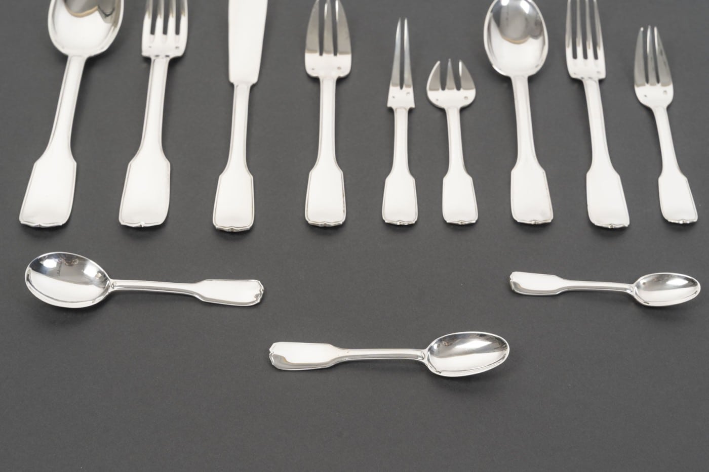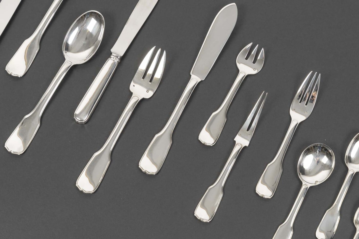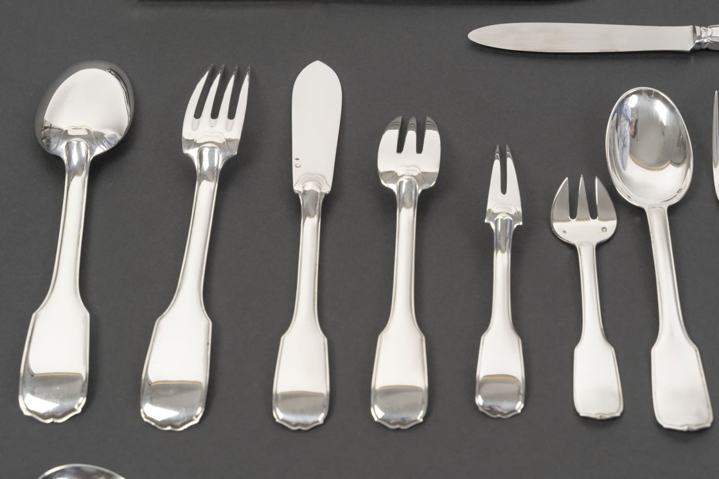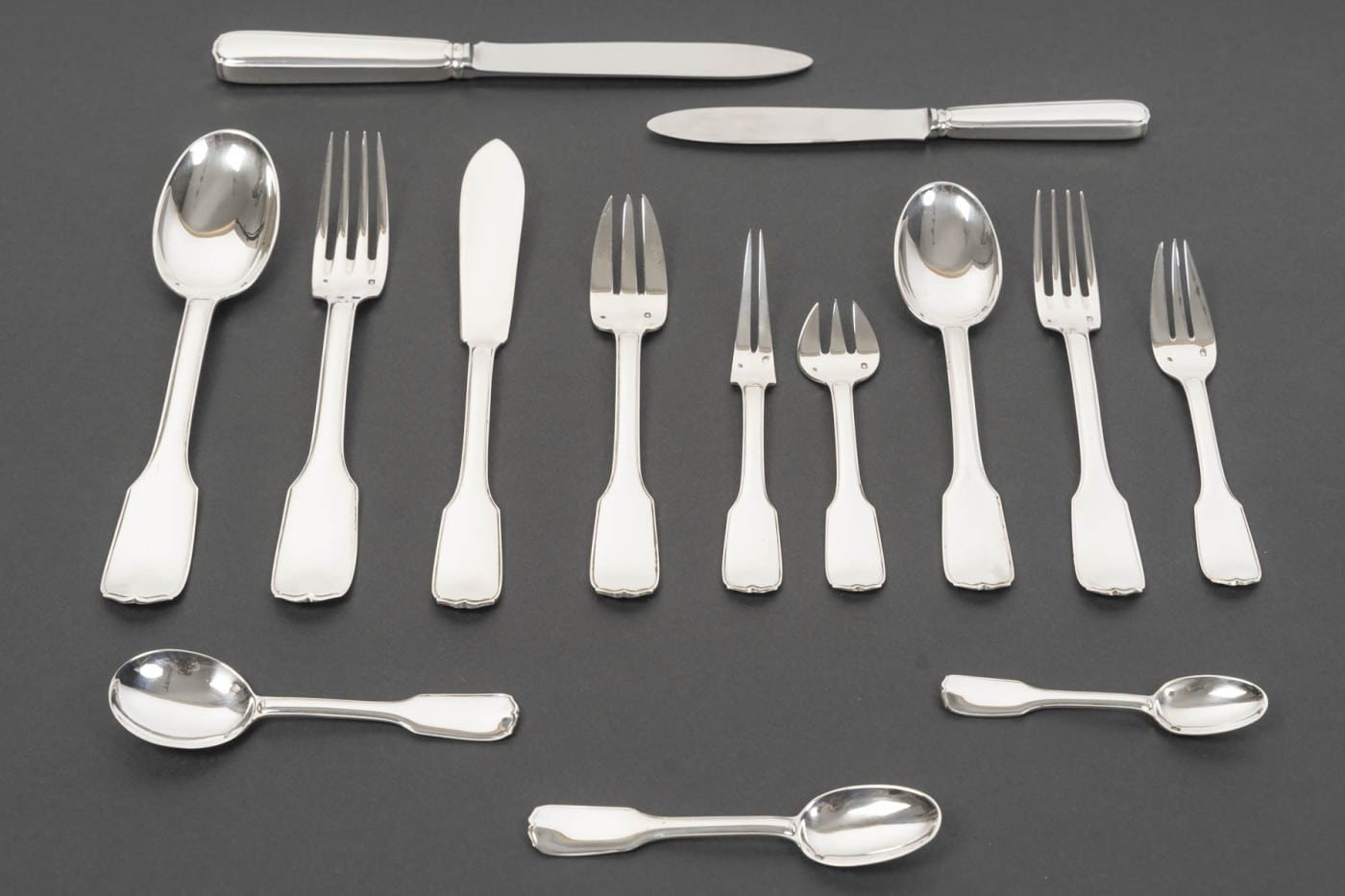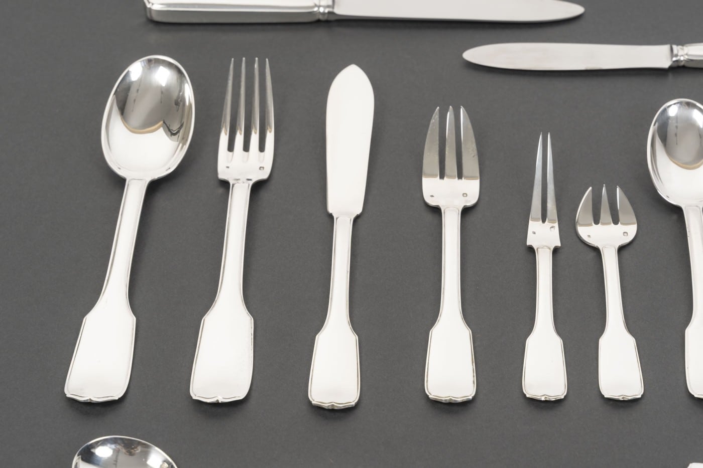 JEAN TETARD MENAGERE EN ARGENT MASSIF 198 PIECES Epoque 1930JEAN TETARD MENAGERE EN ARGENT MASSIF 198 PIECES Epoque 1930