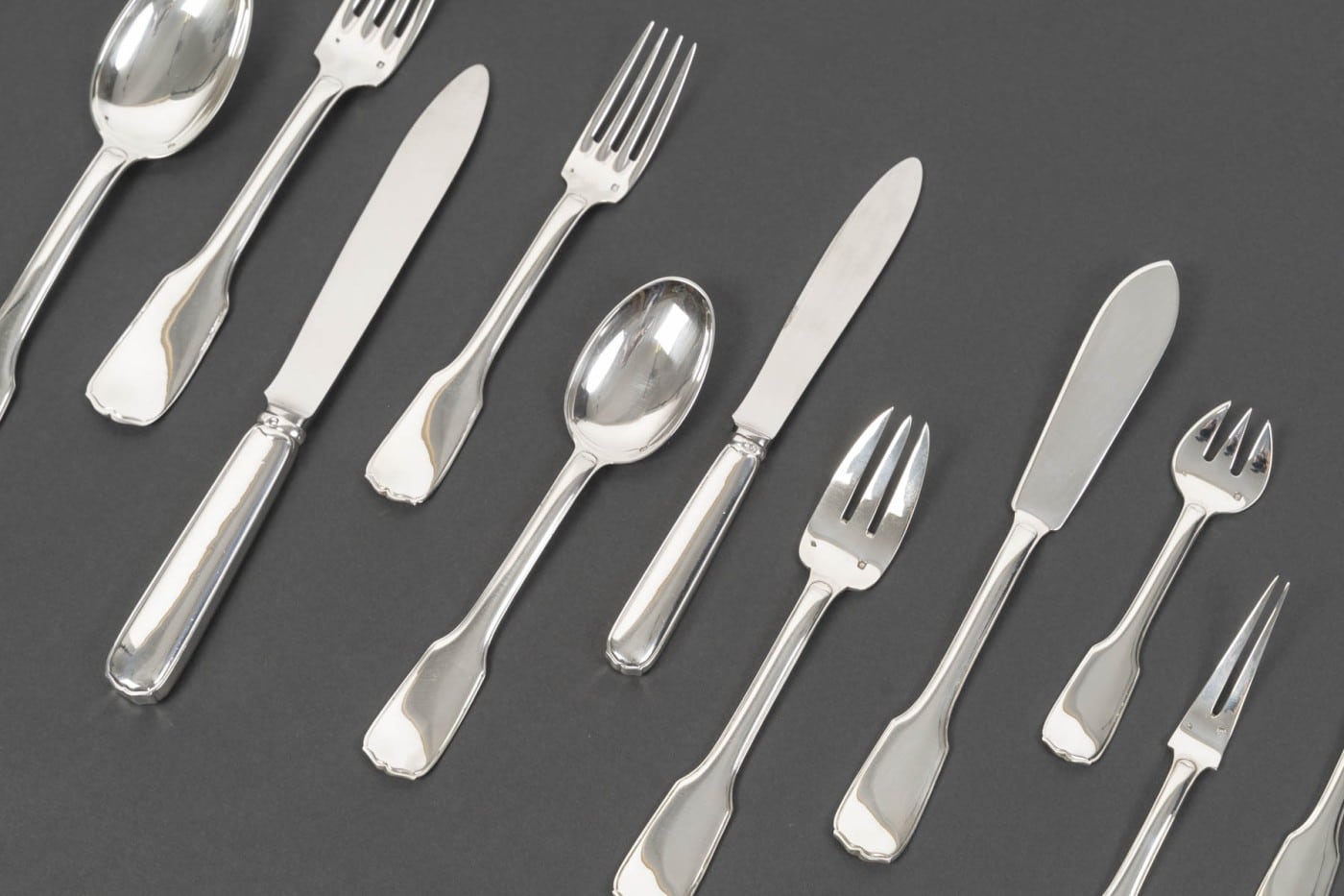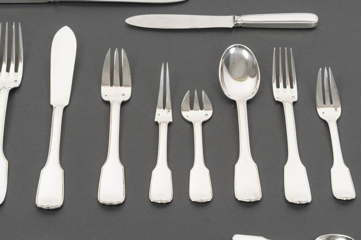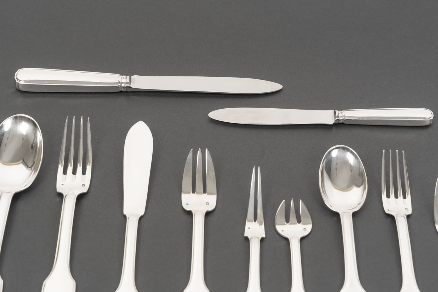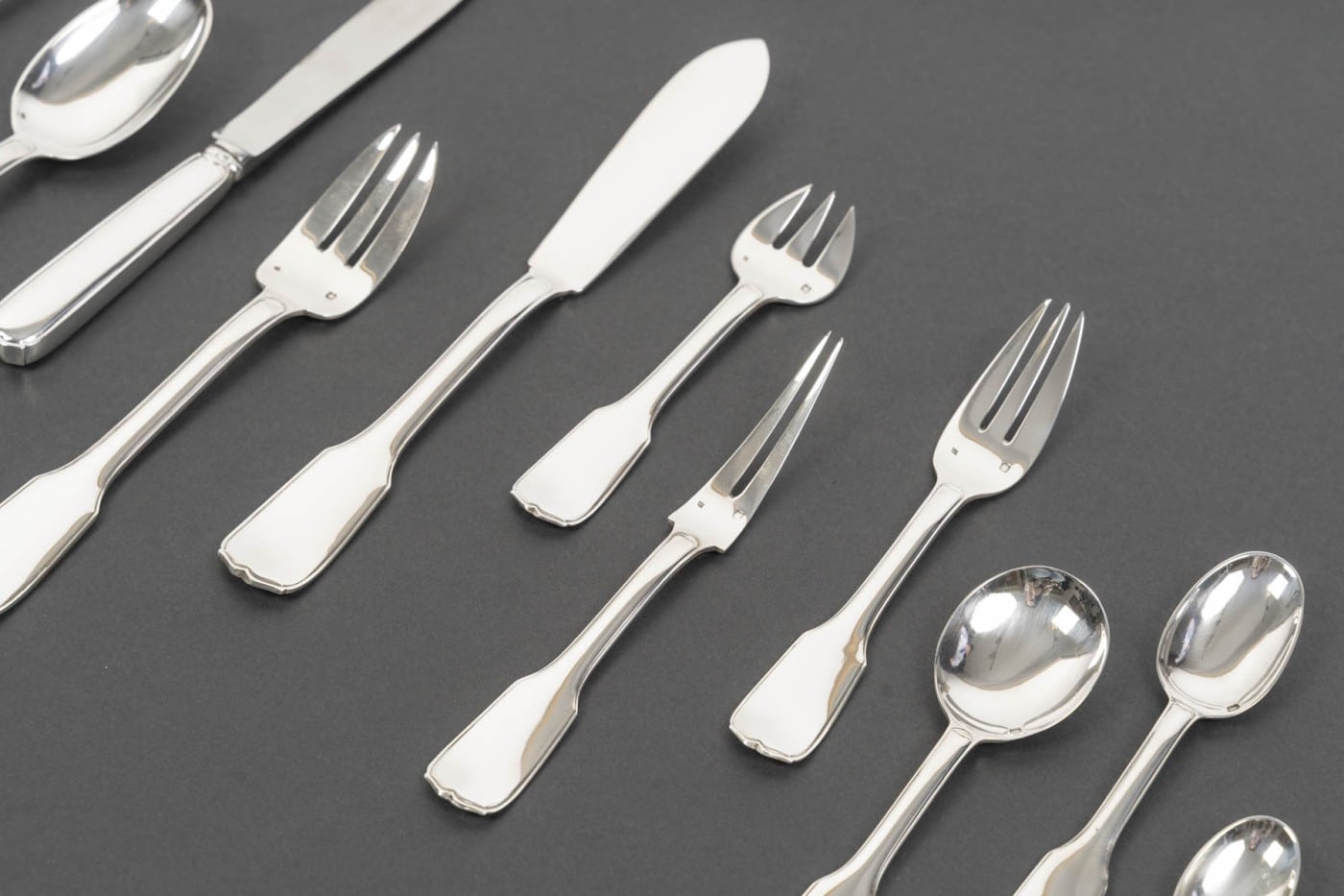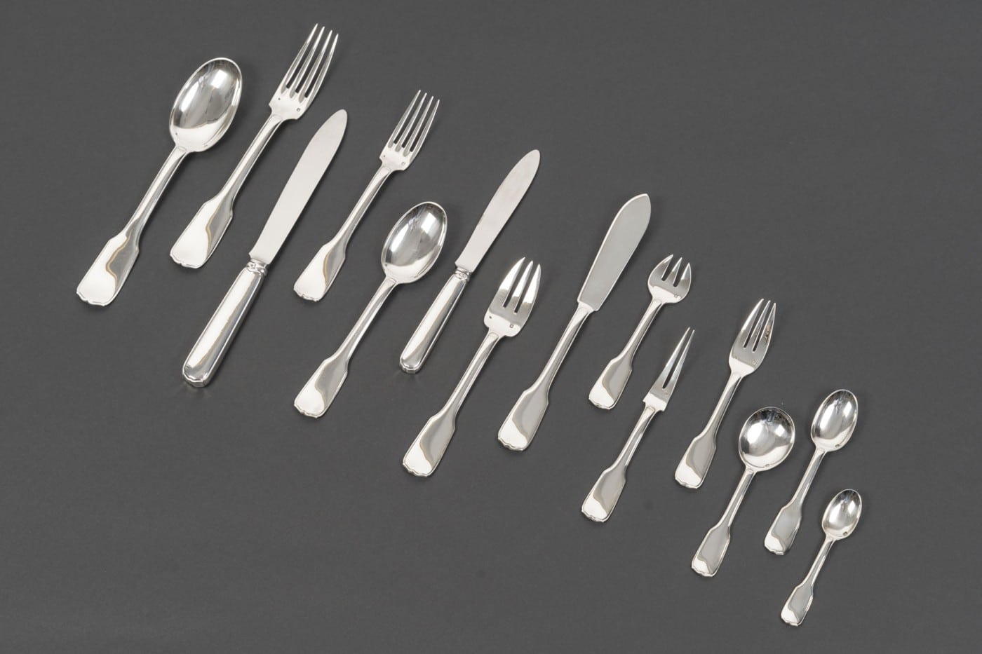 JEAN TETARD MENAGERE EN ARGENT MASSIF 198 PIECES Epoque 1930JEAN TETARD MENAGERE EN ARGENT MASSIF 198 PIECES Epoque 1930