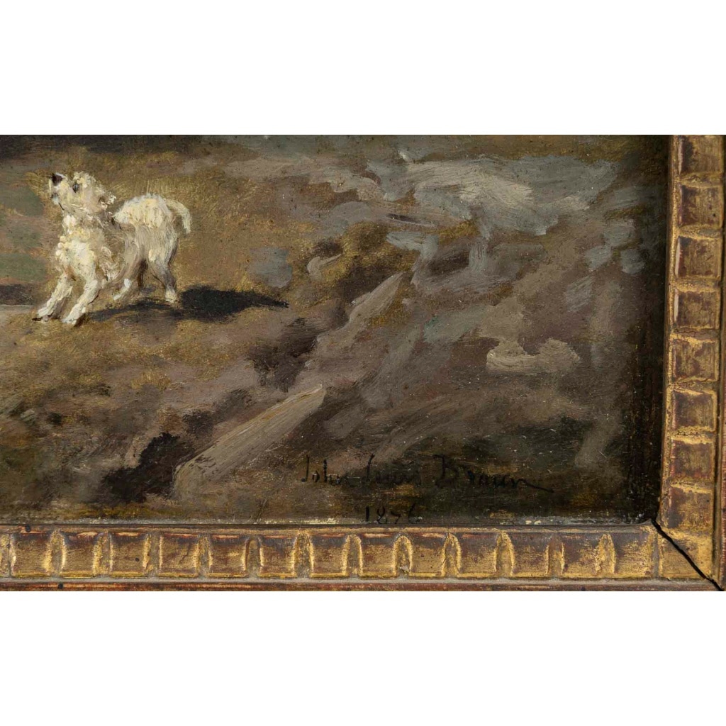 This oil on wood is dated 1856 and signed in the lower right corner.