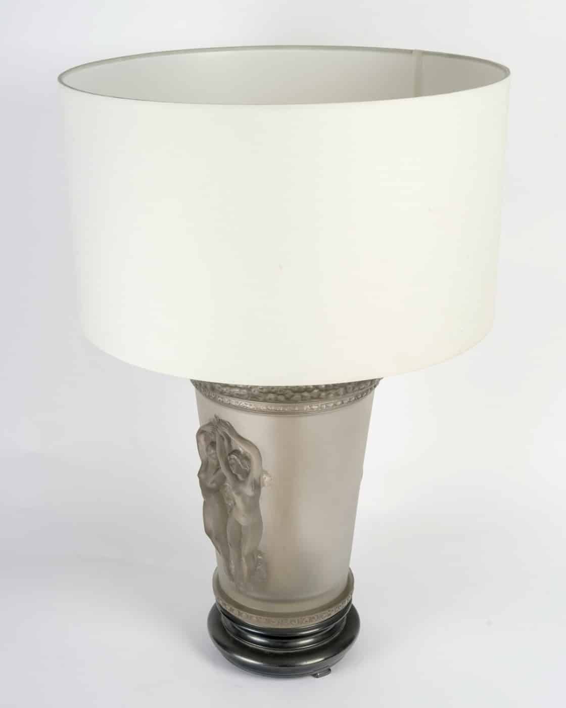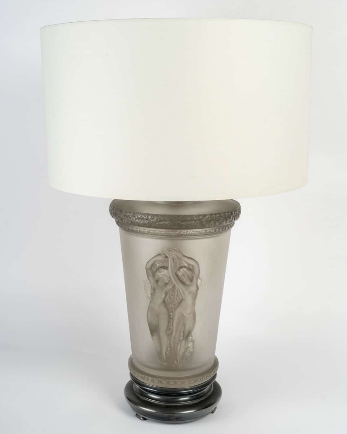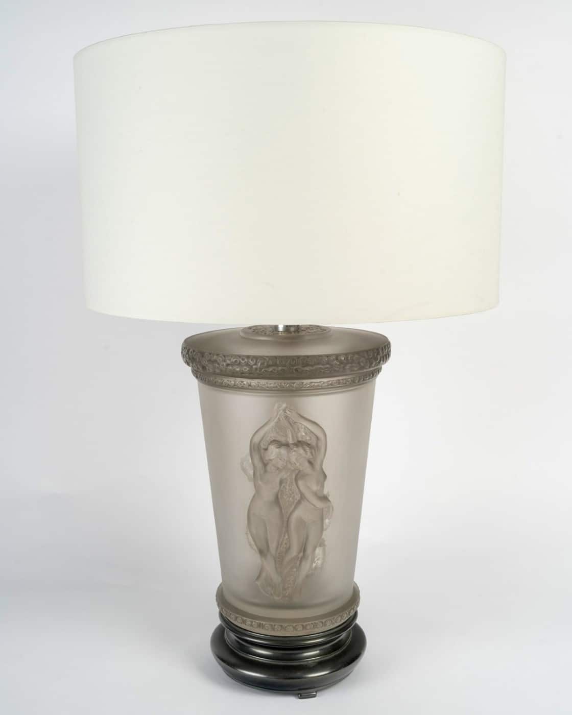 Lampe « Deux Danseuses » en cristal blanc patiné gris de Marc Lalique créée dans les années 1950.