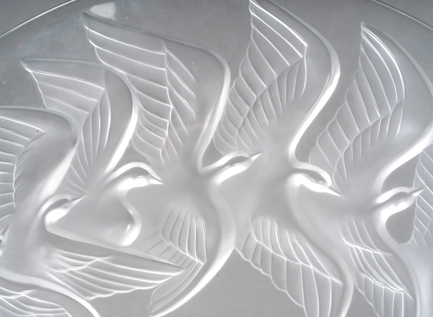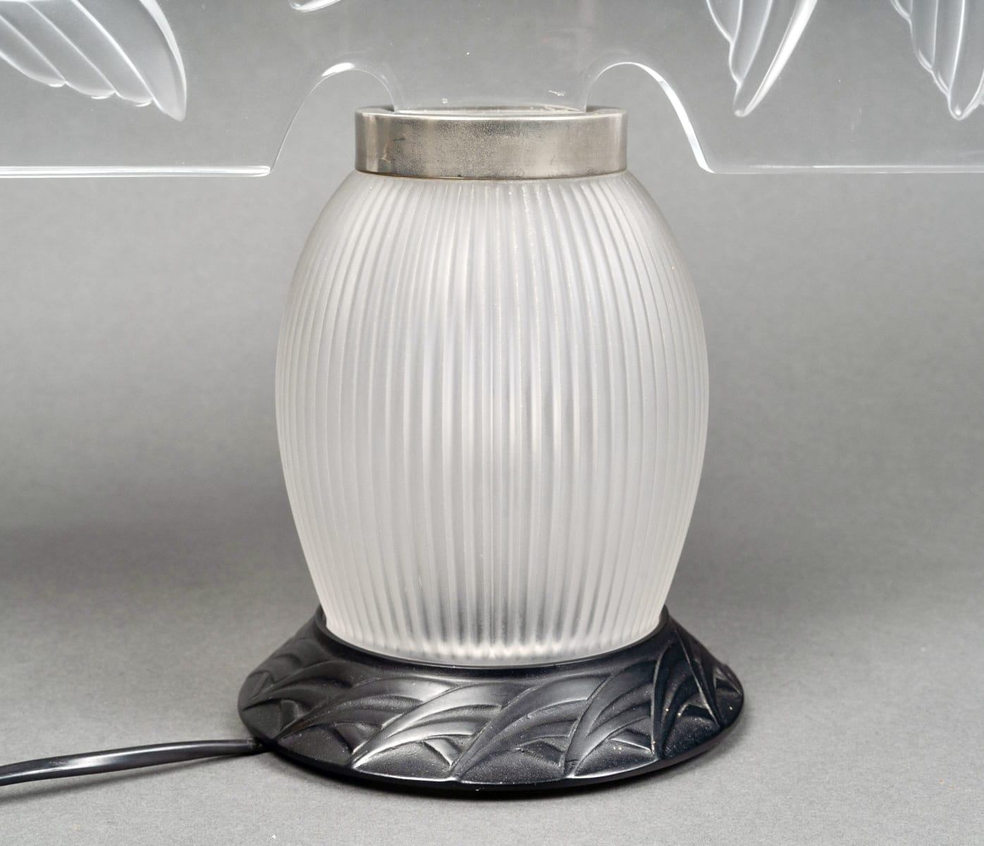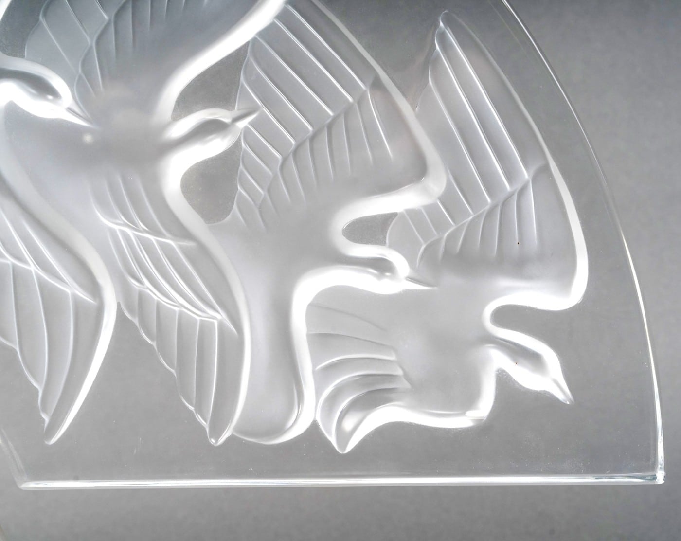 Lampe « Hokkaido » à décor de d’hirondelles en vol en cristal blanc de Marie-Claude Lalique créée 1990.