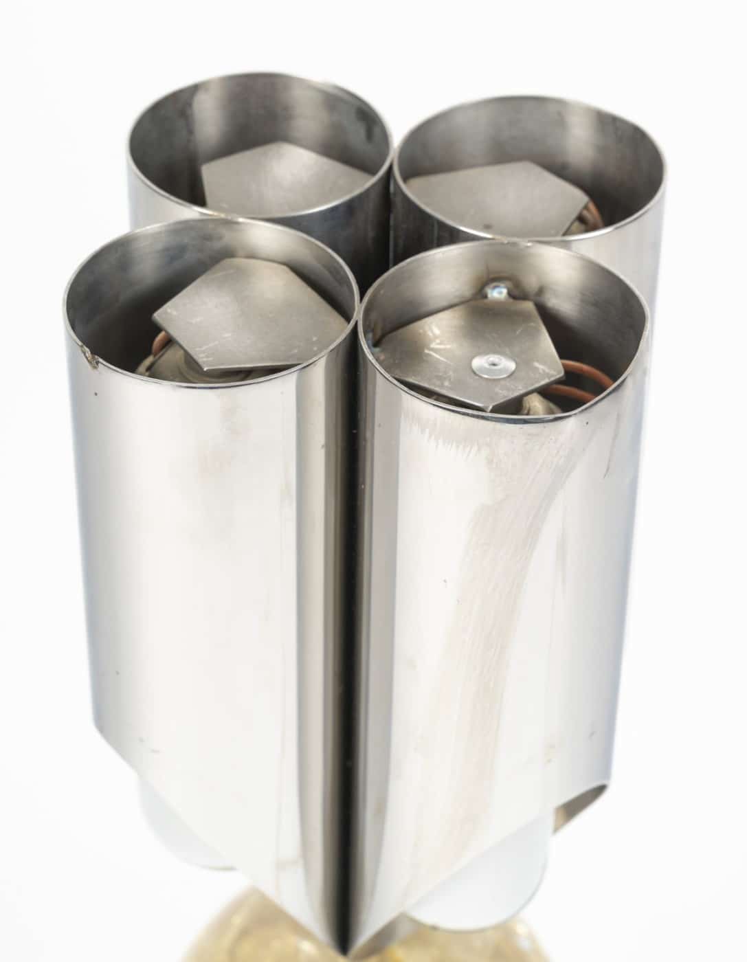 Nous remercions la Maison Charles de nous avoir confirmé qu’il s’agit bien d’une rare lampe provenant de la collection Inox dessinée par Jacques Charles dans les années 70.