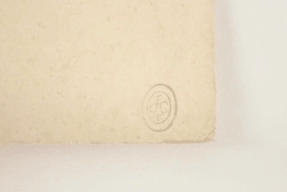 Cachet de succession dans le coin inférieur droit à l’encre bleue.