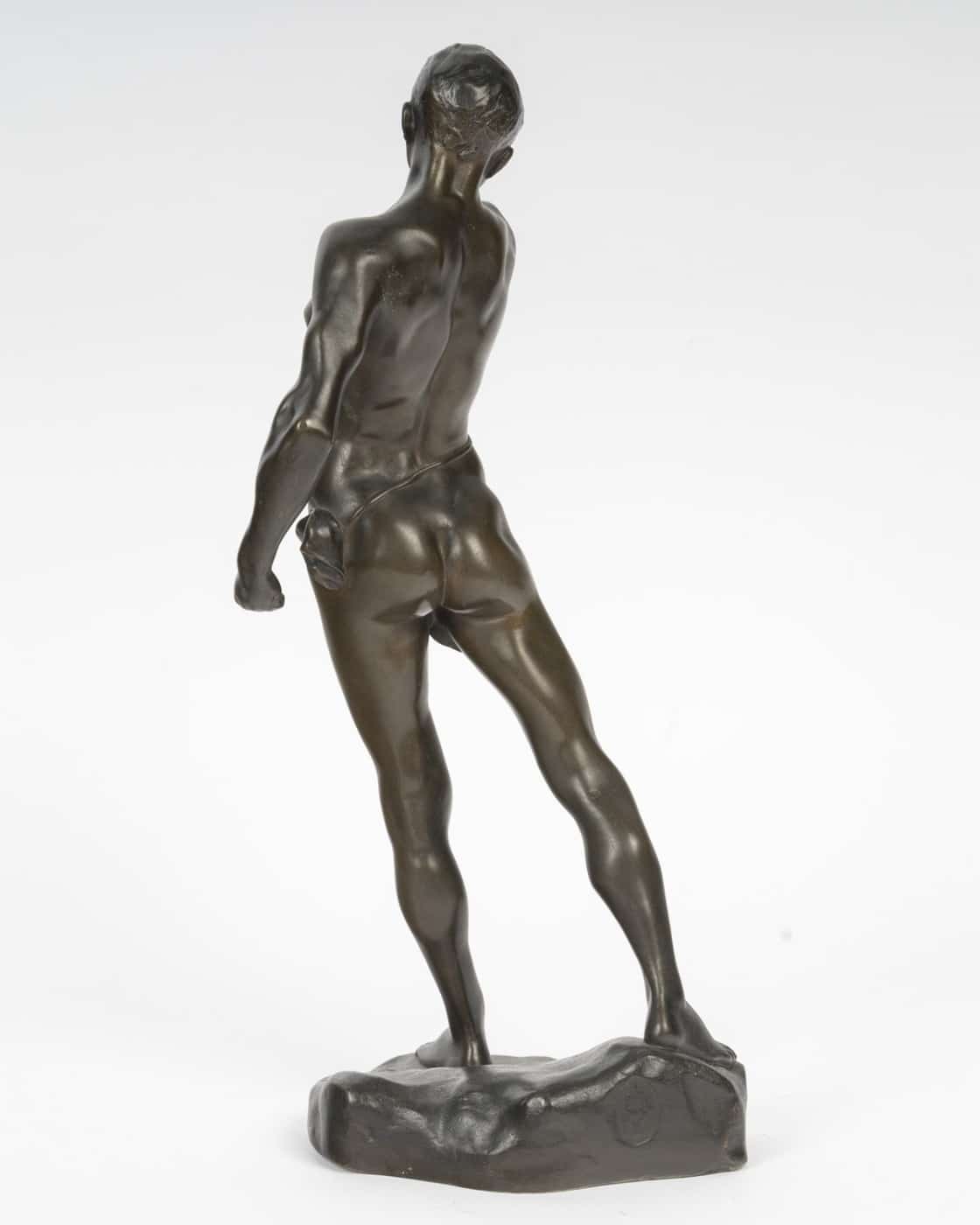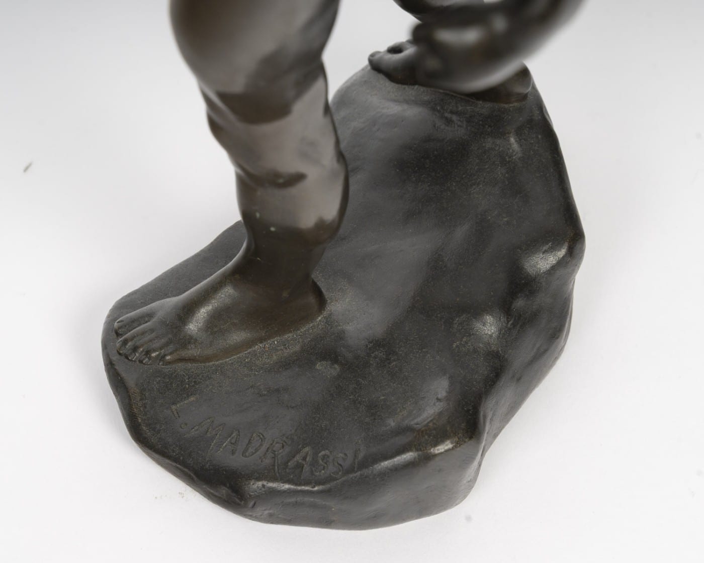 Joli bronze à la patine brune signé Luca Madrassi (1848-1919) représentant un jeune homme élancé.