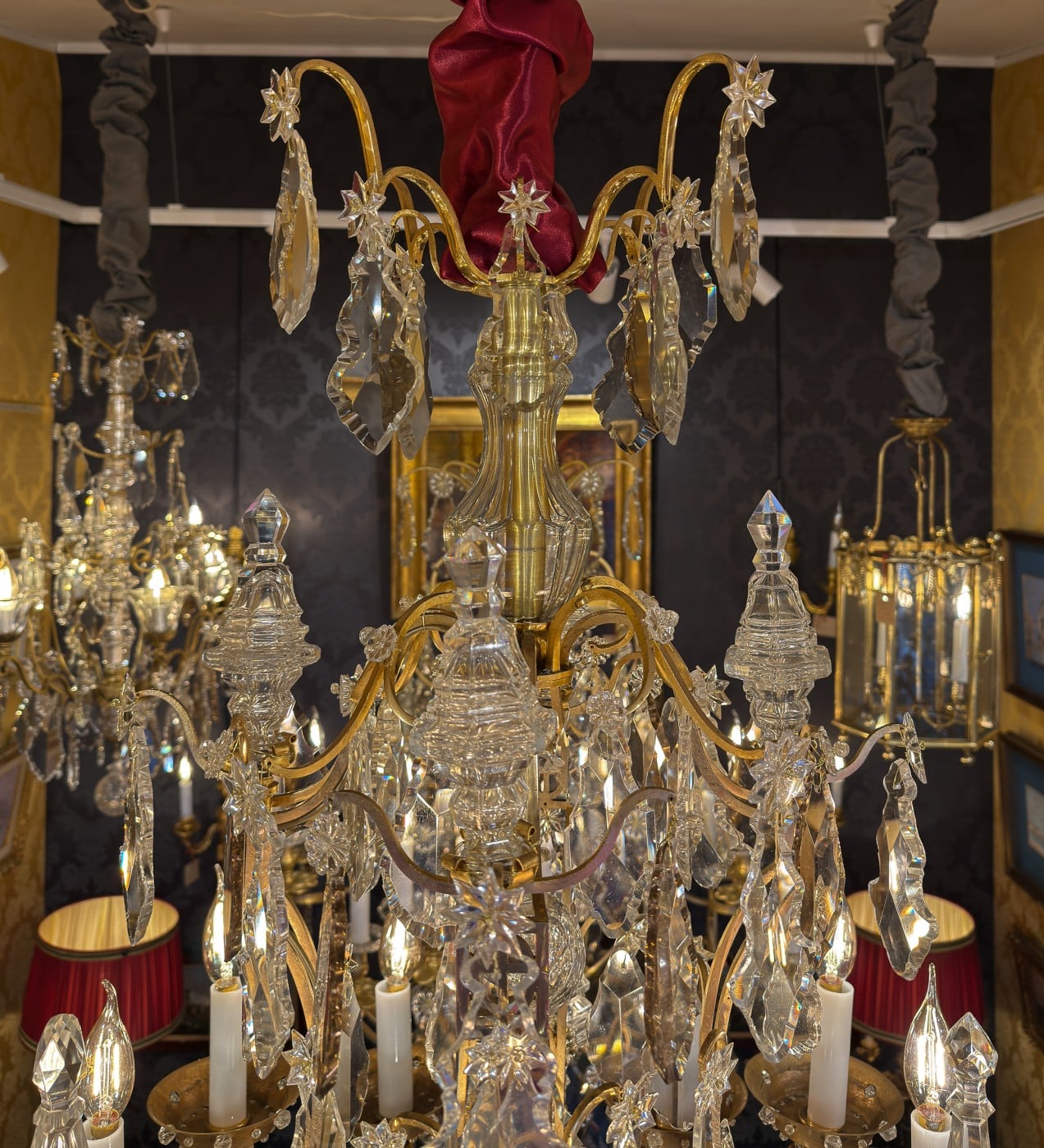 The chandelier is in excellent condition. It has been carefully cleaned and retains its beautiful original gilding, enhancing its charm and authenticity.