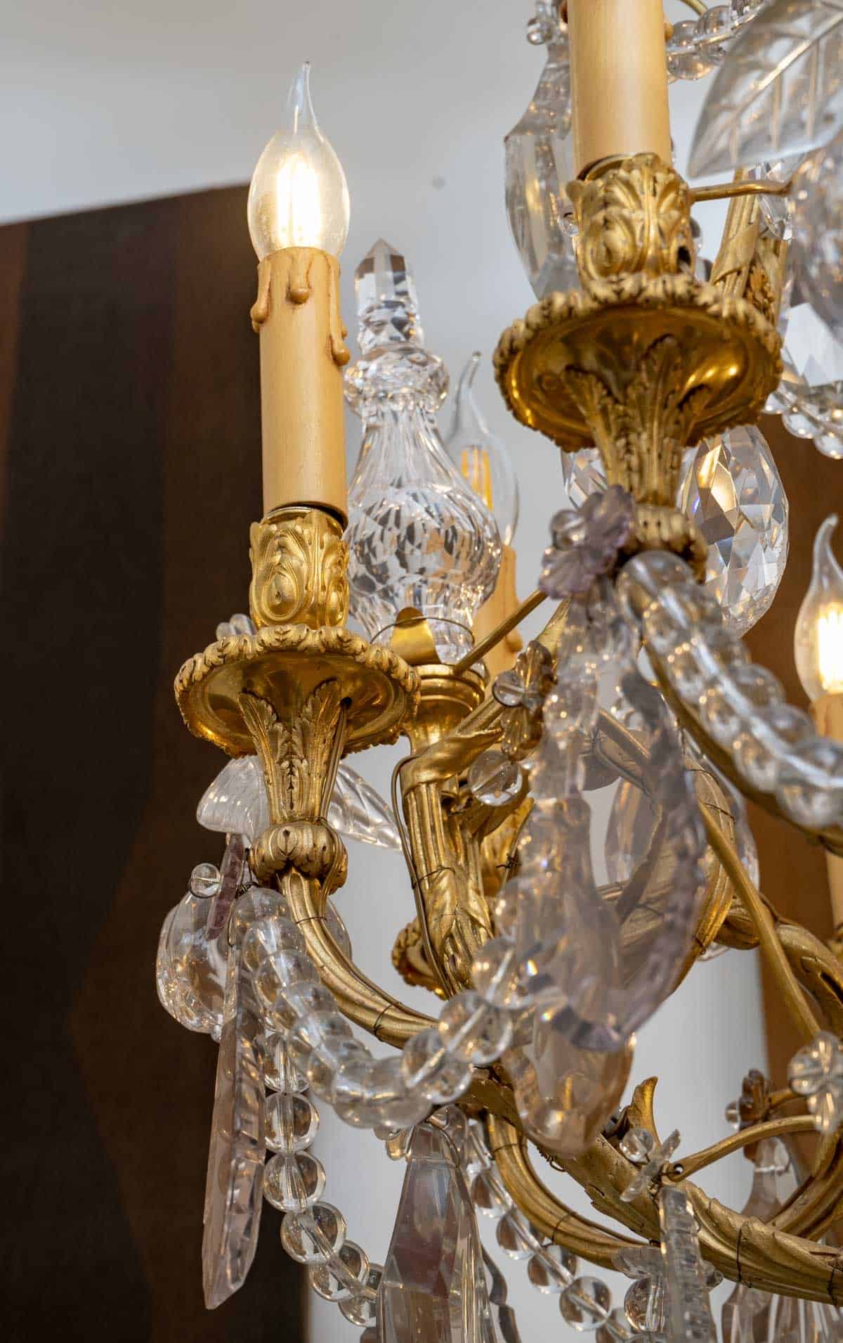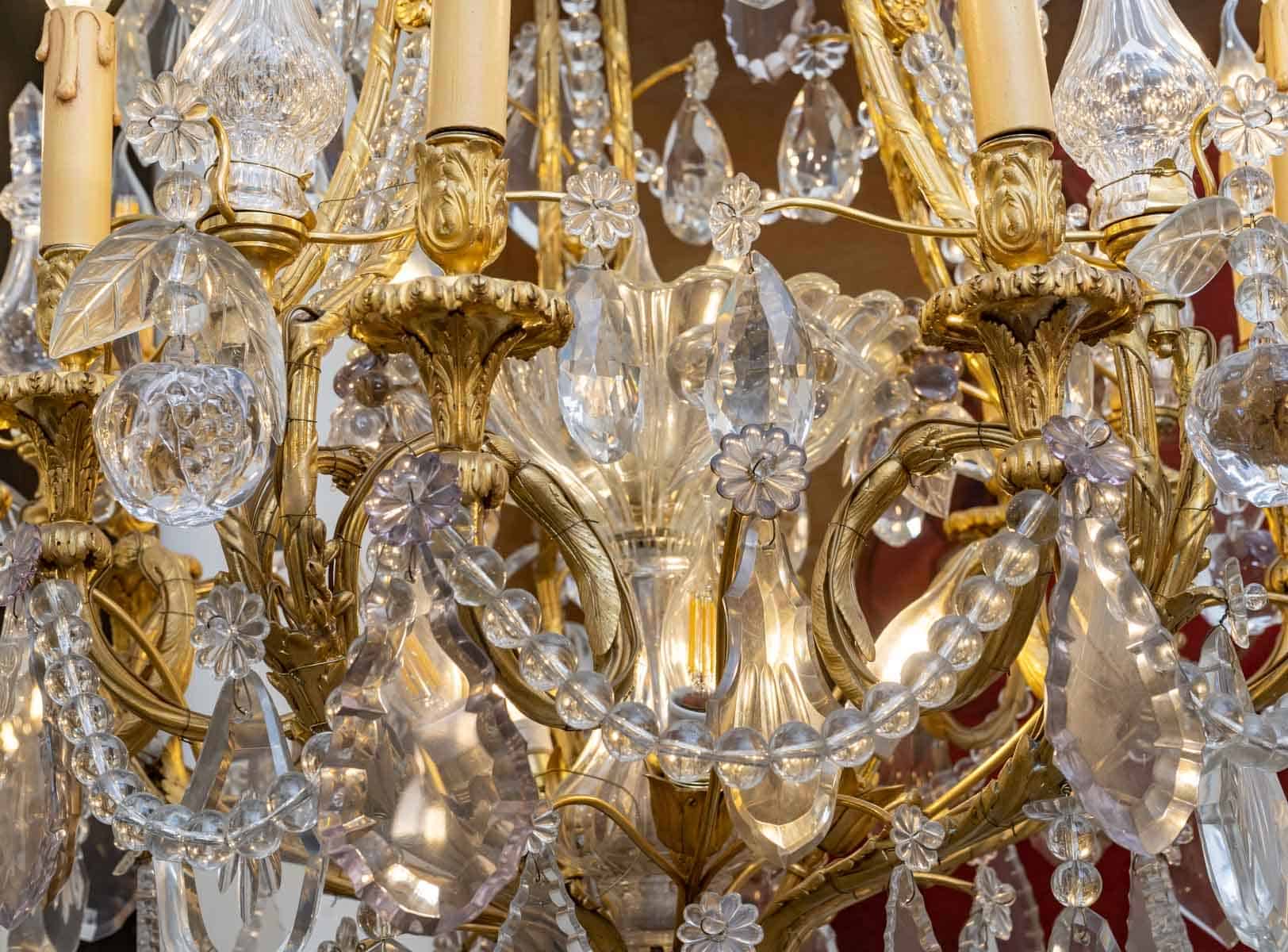 Lustre de style Louis XVI en bronze doré et cristal de Baccarat à 20 lumières