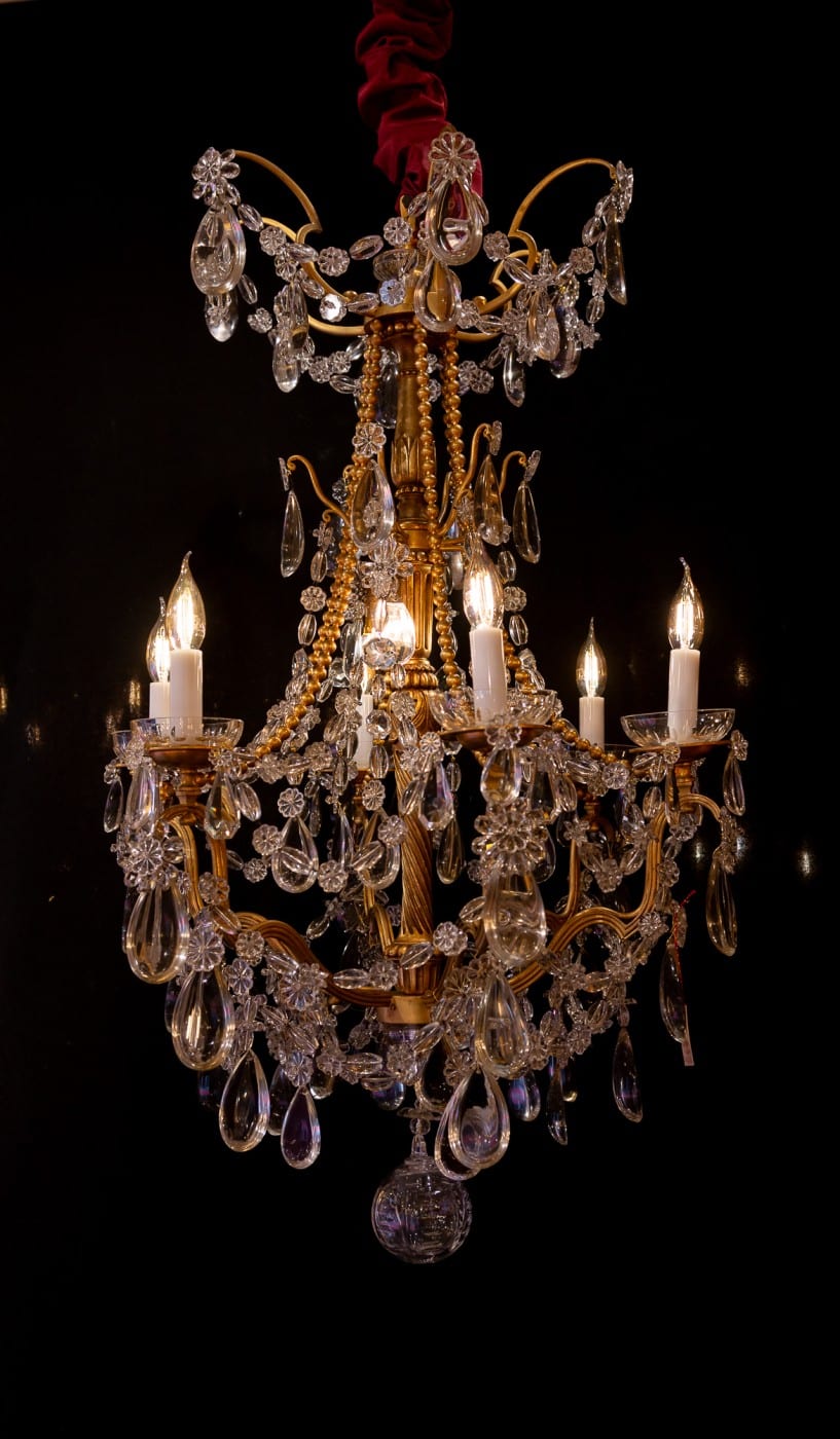 In fine original condition, in its period gilding. It is professionally wired for electricity, European standards, and the possibility of setting to the American standard on request.