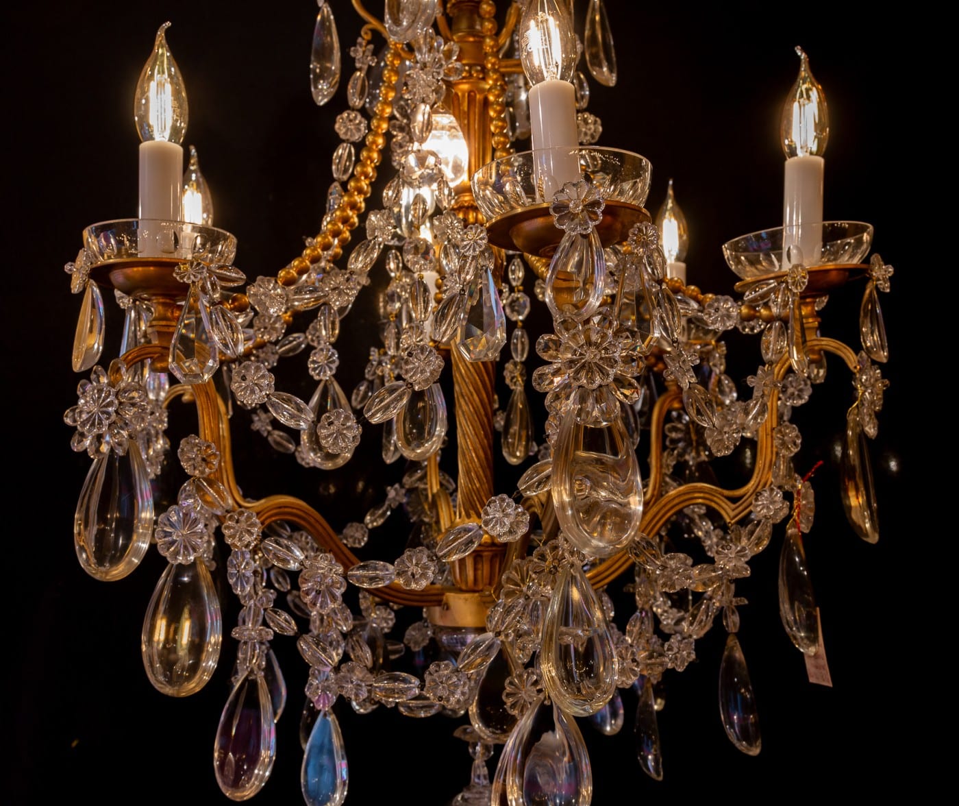 En très bon état, dans sa dorure d’époque, électrification aux normes Européennes, possibilités de mise au standard américain sur demande.