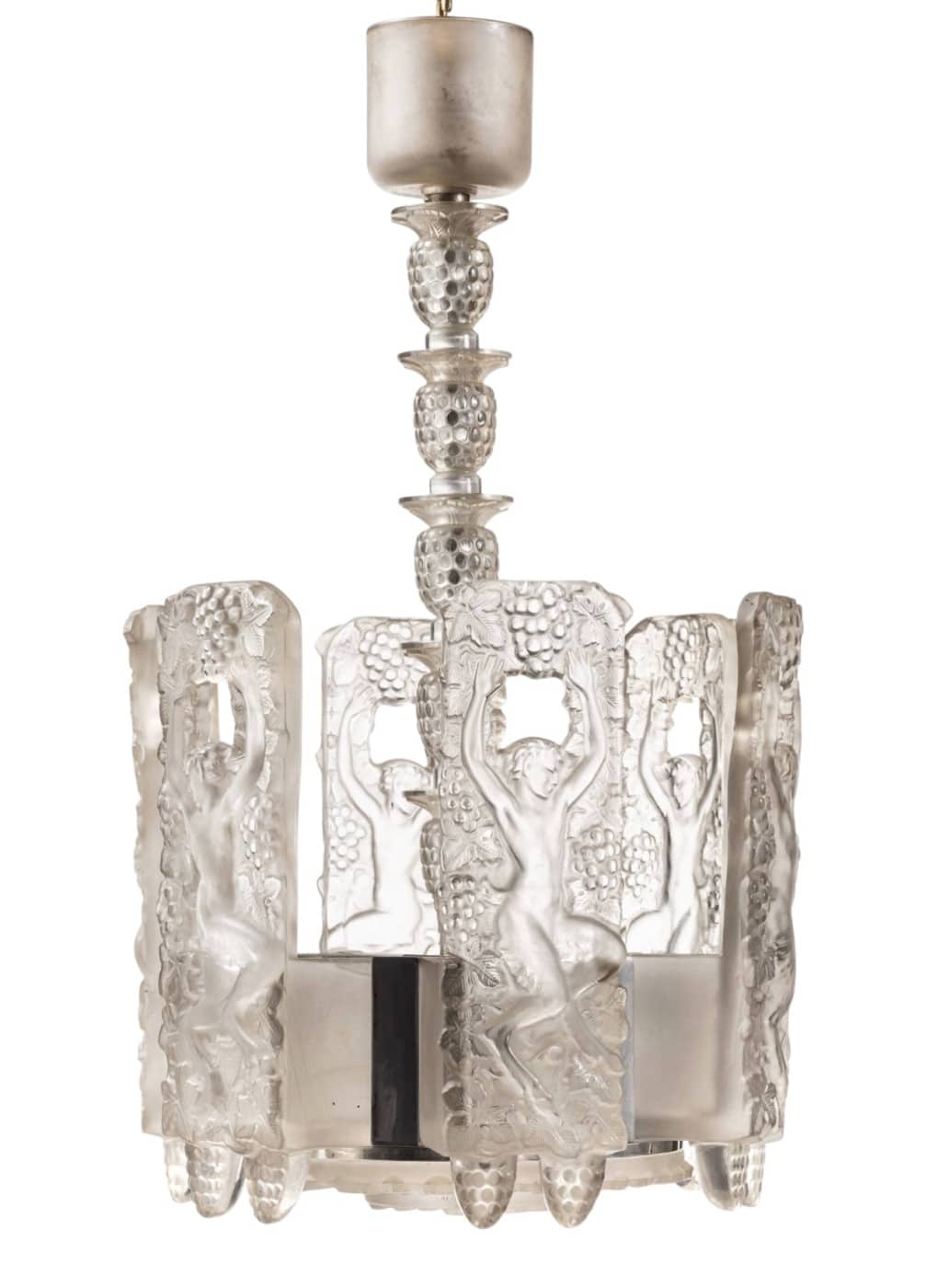 Lustre « Faunes » en verre blanc créée par Marc Lalique en 1948.