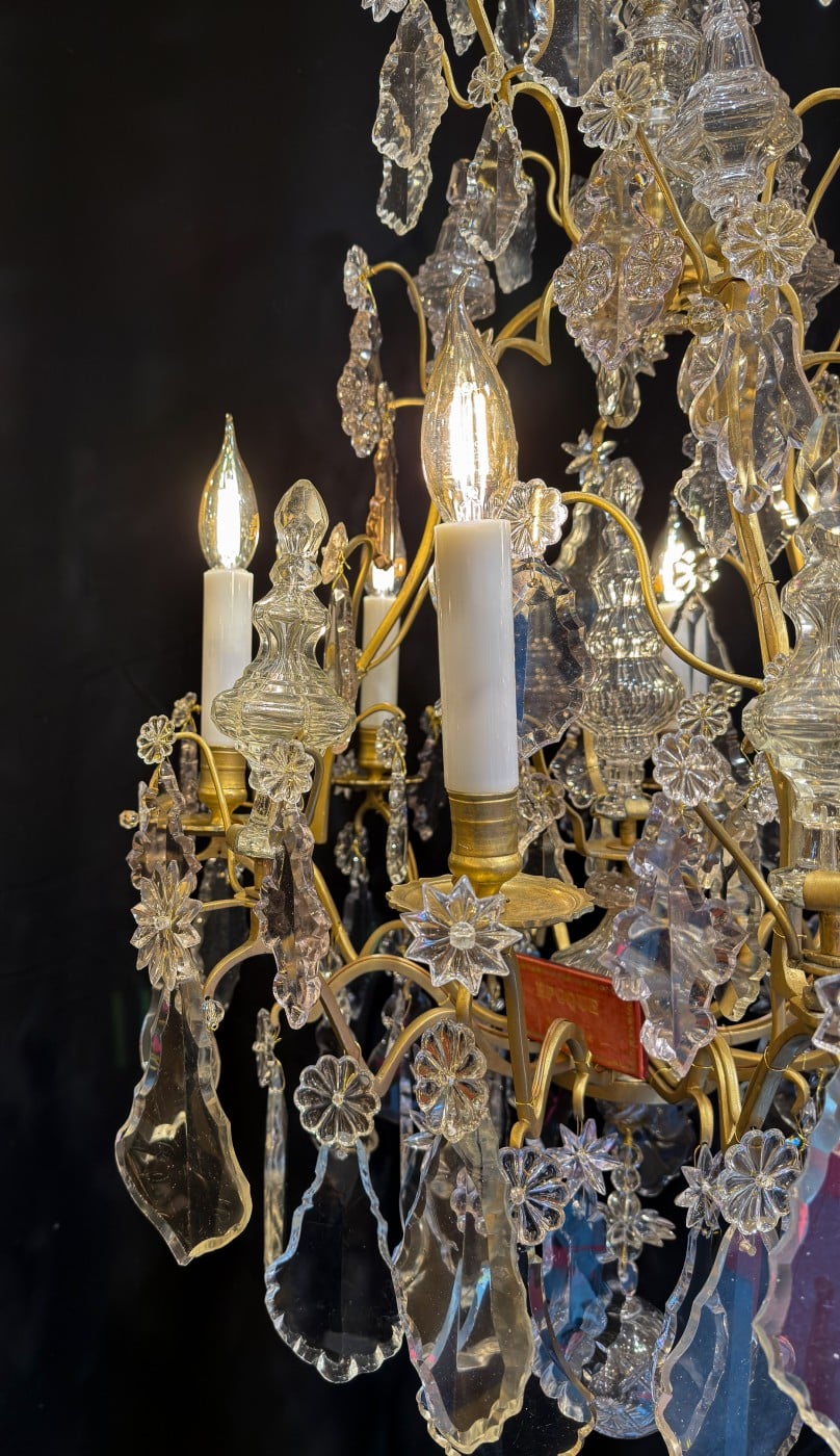 Le lustre est en très bon état de conservation. Il a été nettoyé et conserve une partie de sa dorure d’origine, ce qui ajoute à son charme et son authenticité.