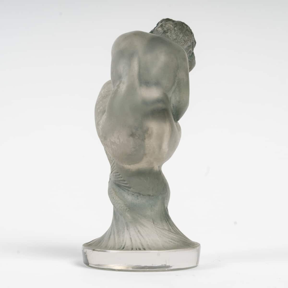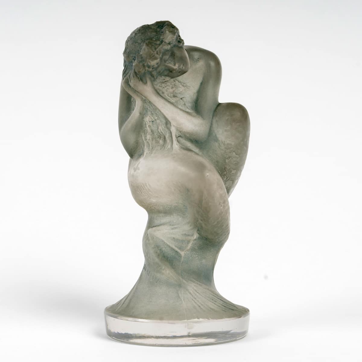 Mascotte Automobile Statuette « Sirène » en verre blanc patiné bleu gris de René Lalique créée en 1920.