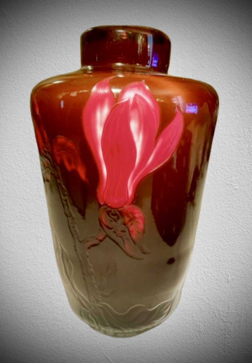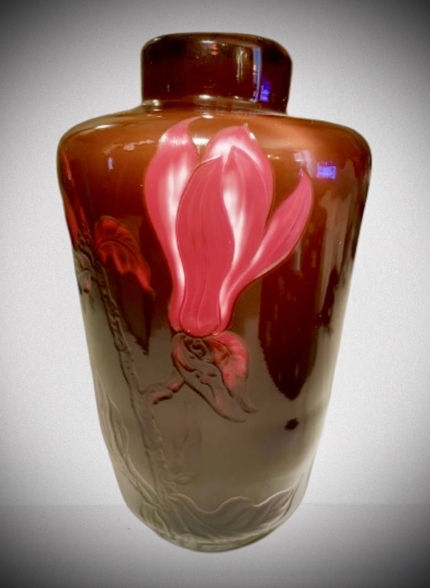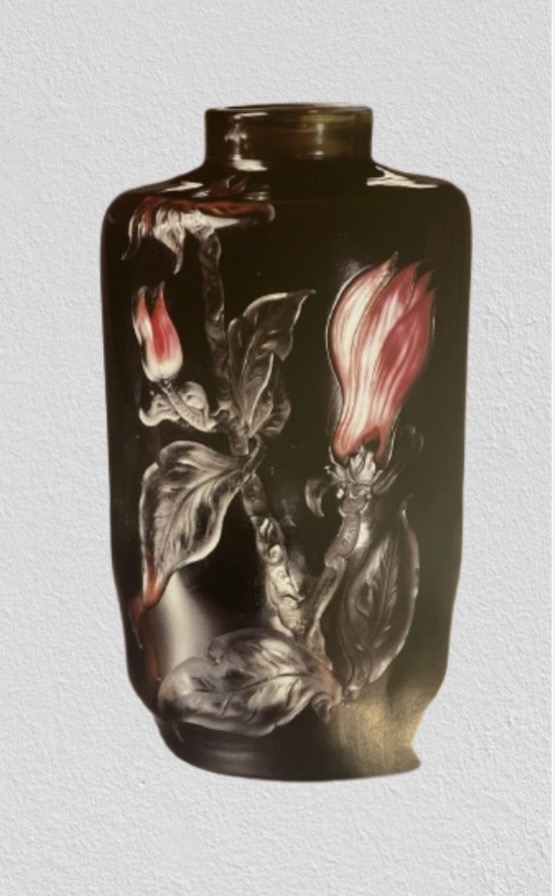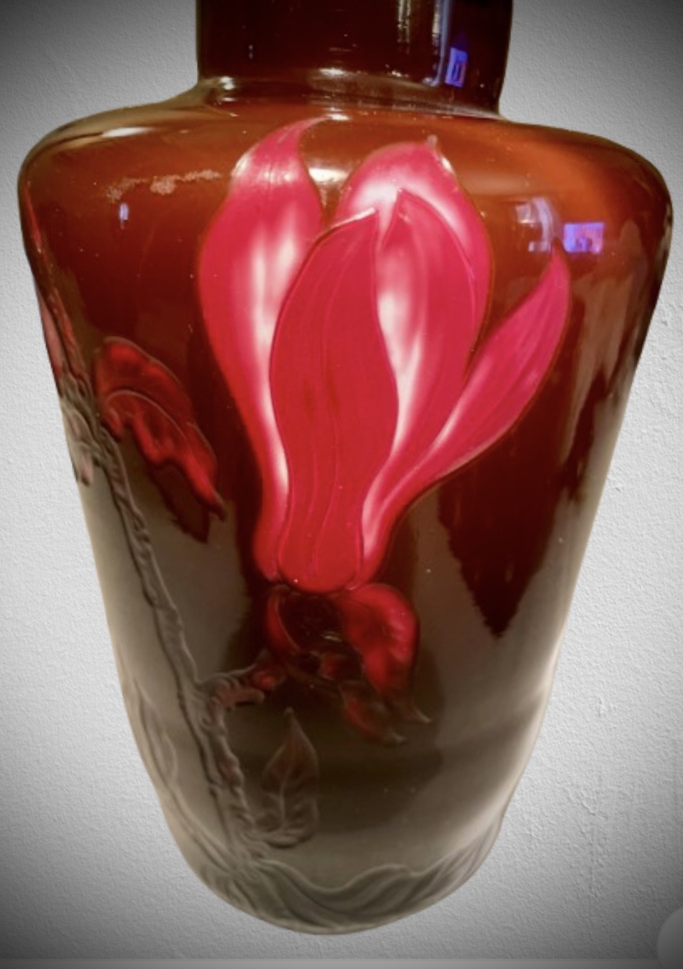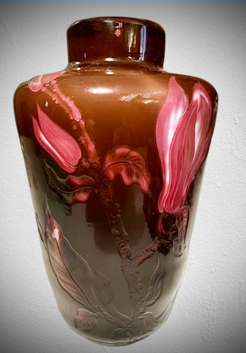 SPECTACULAIRE VASE AUX MAGNOLIAS ENTIÈREMENT SCULPTÉ A LA ROUE ET AU TOURET DES ÉTABLISSEMENTS MEISENTHAL EFFECTUÉ PAR LE FRÈRE DE DÉSIRÉ CHRISTIAN , FRANÇOIS CHRISTIAN CERTAINEMENT EN COLLABORATION AVEC SON FRÈRE , UN AUTRE MODÈLE PRATIQUEMENT SIMILAIRE REPRÉSENTÉ DANS LES PHOTOS CI JOINTES