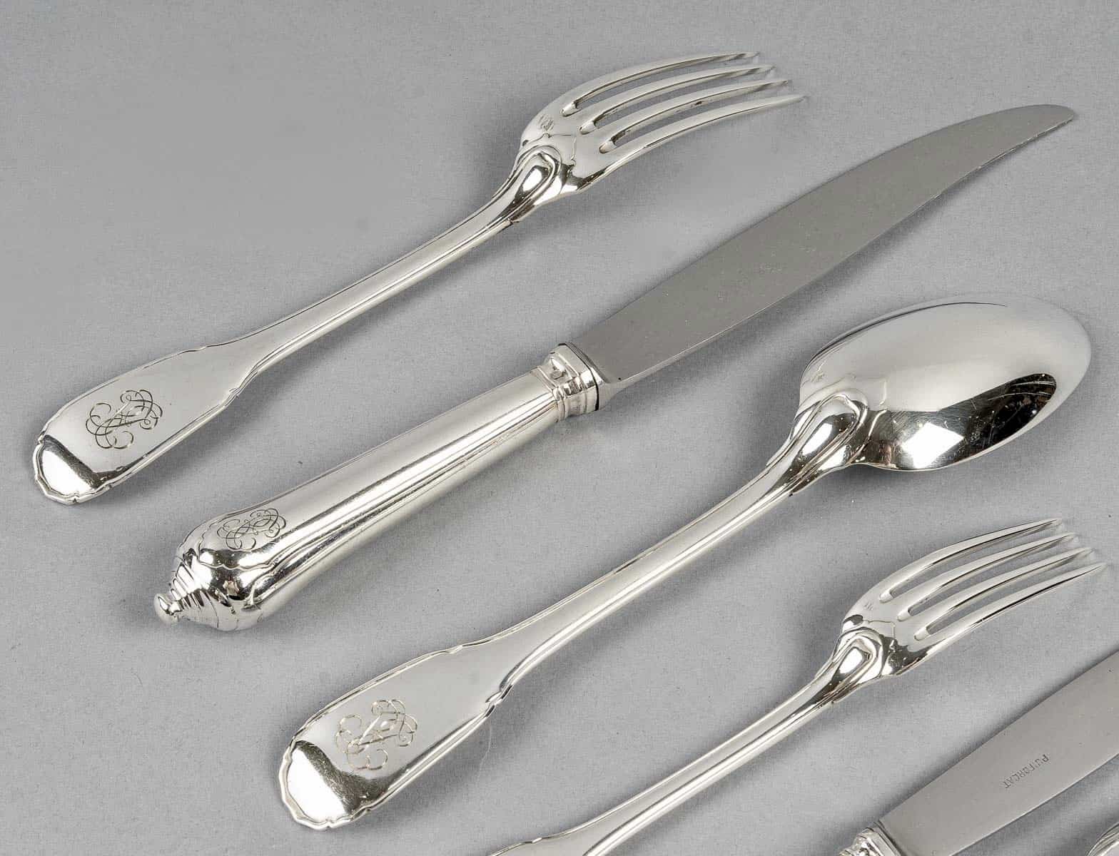 Ménagère « Noailles » en argent massif Minerve Premier Titre 950/1000ème de la Maison Puiforcat.