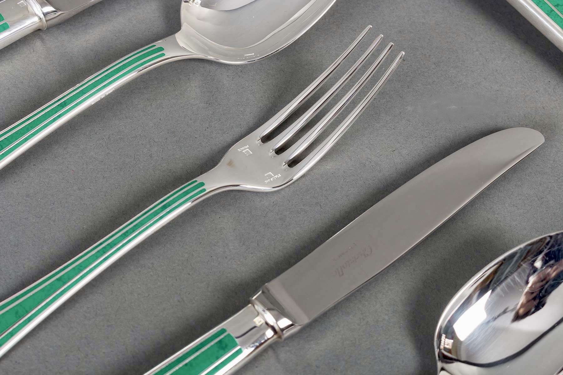 Ménagère « Talisman » métal argenté et laque de Chine verte de CHRISTOFLE – 93 pièces