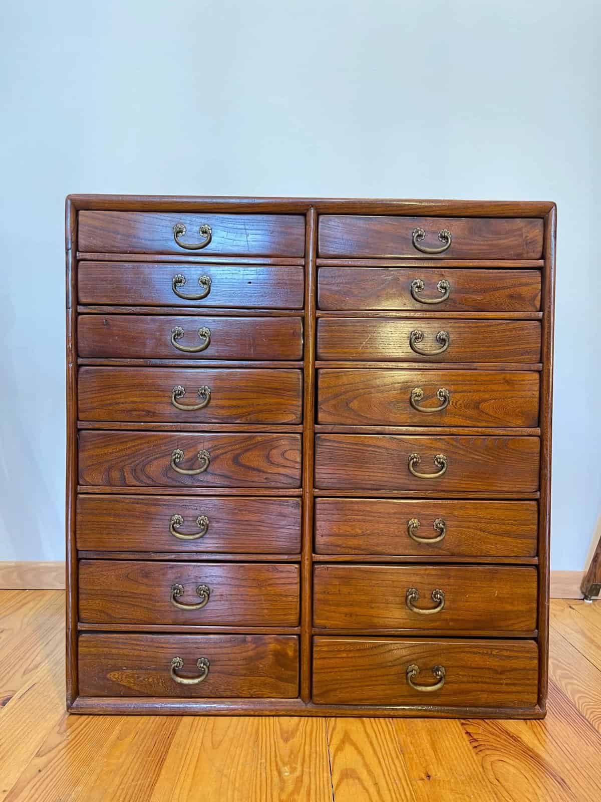 Meuble d’apothicaire en orme 16 tiroirs