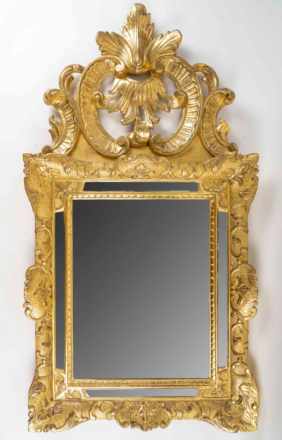 A Fine Regence Period Giltwood Mirror with Pierced Pediment, c. 1715–1723