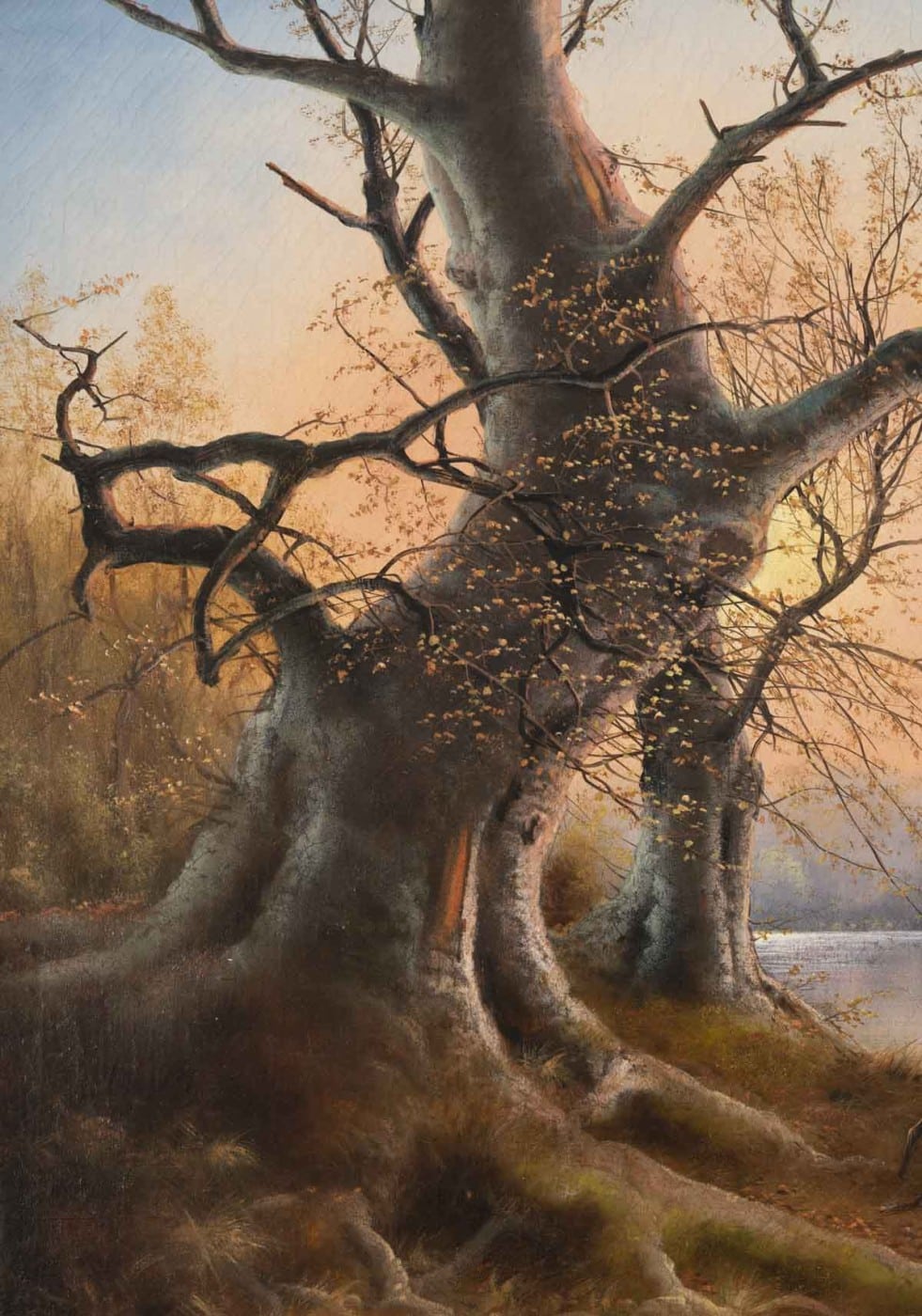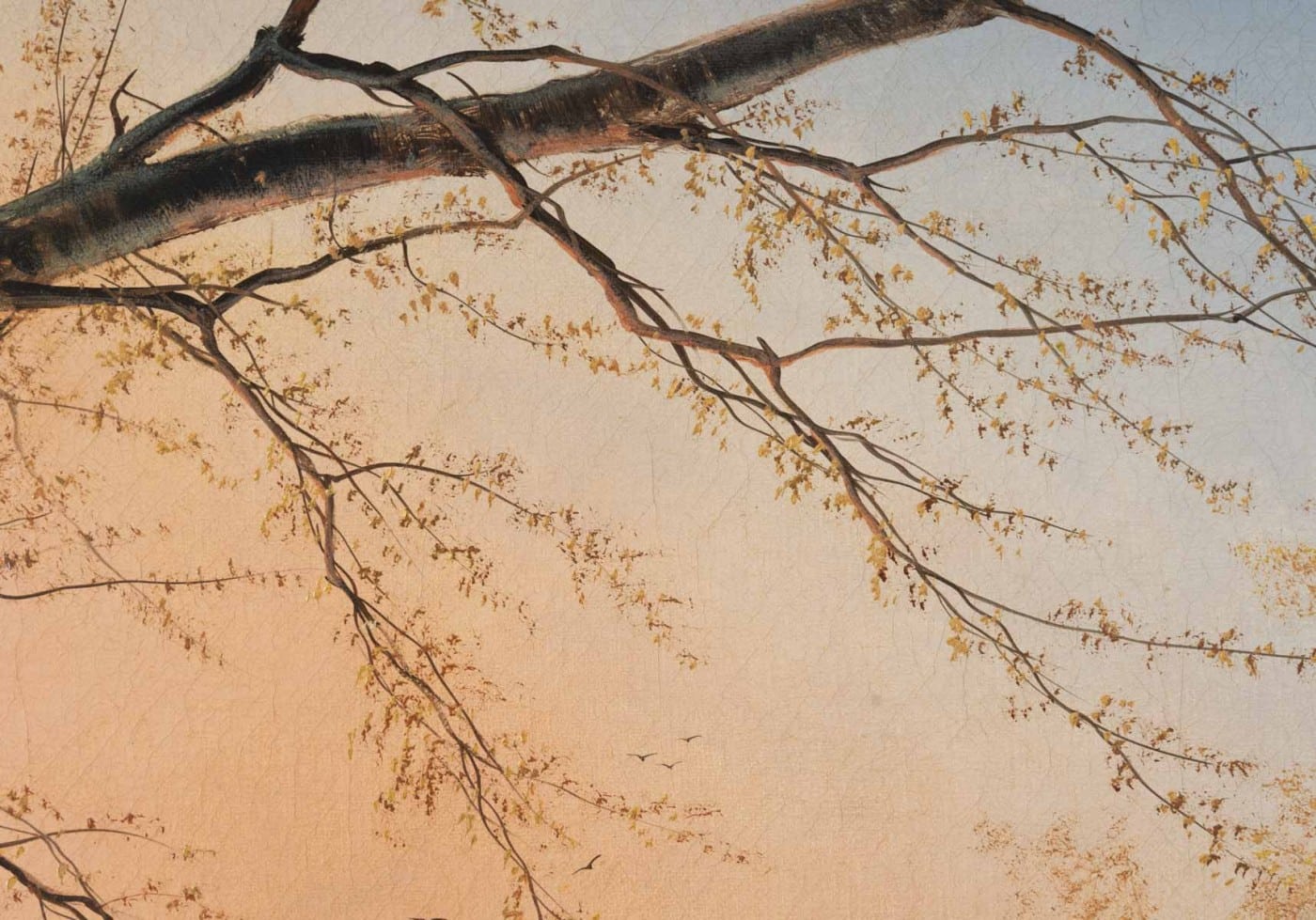 Ayant suivit l’influence des impressionnistes,Christiansen a su capturer l’atmosphère silencieuse des forêts nordiques, une douce lumière vibrante et apaisante innonde ce beau tableau de l’artiste Danois Nils Hans CHRISTIANSEN.
