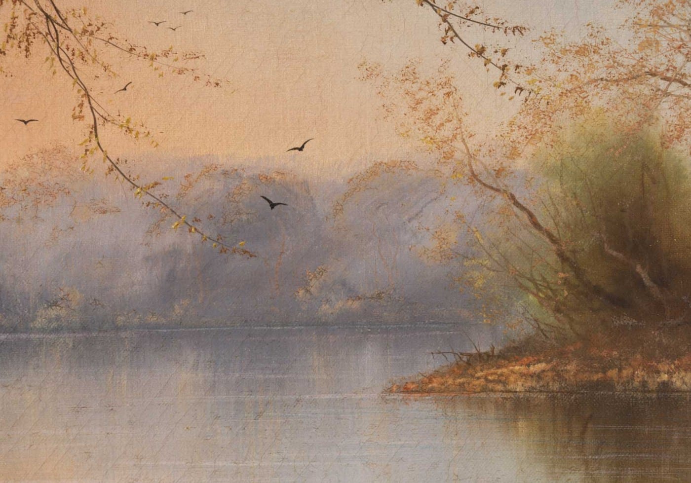 Sa touche est précise, délicate avec de beaux glacis, il nous transporte dans une ambiance sereine et contemplative.