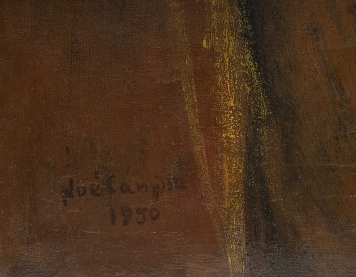 Cette oeuvre est datée 1950. Noé Canjura vient d’arriver à Paris encore imprégné des peintures monumentales et fresque murales de Diego Rivera et de la culture latino américaine.