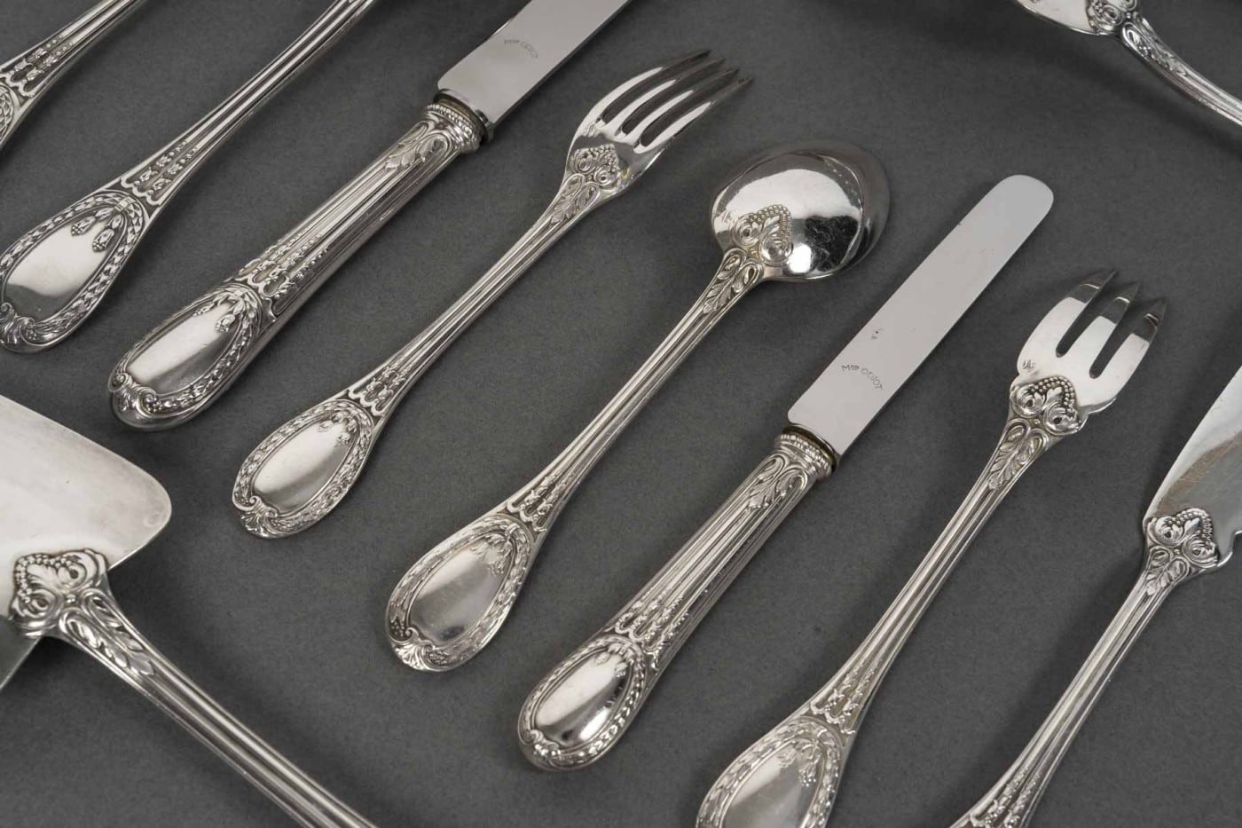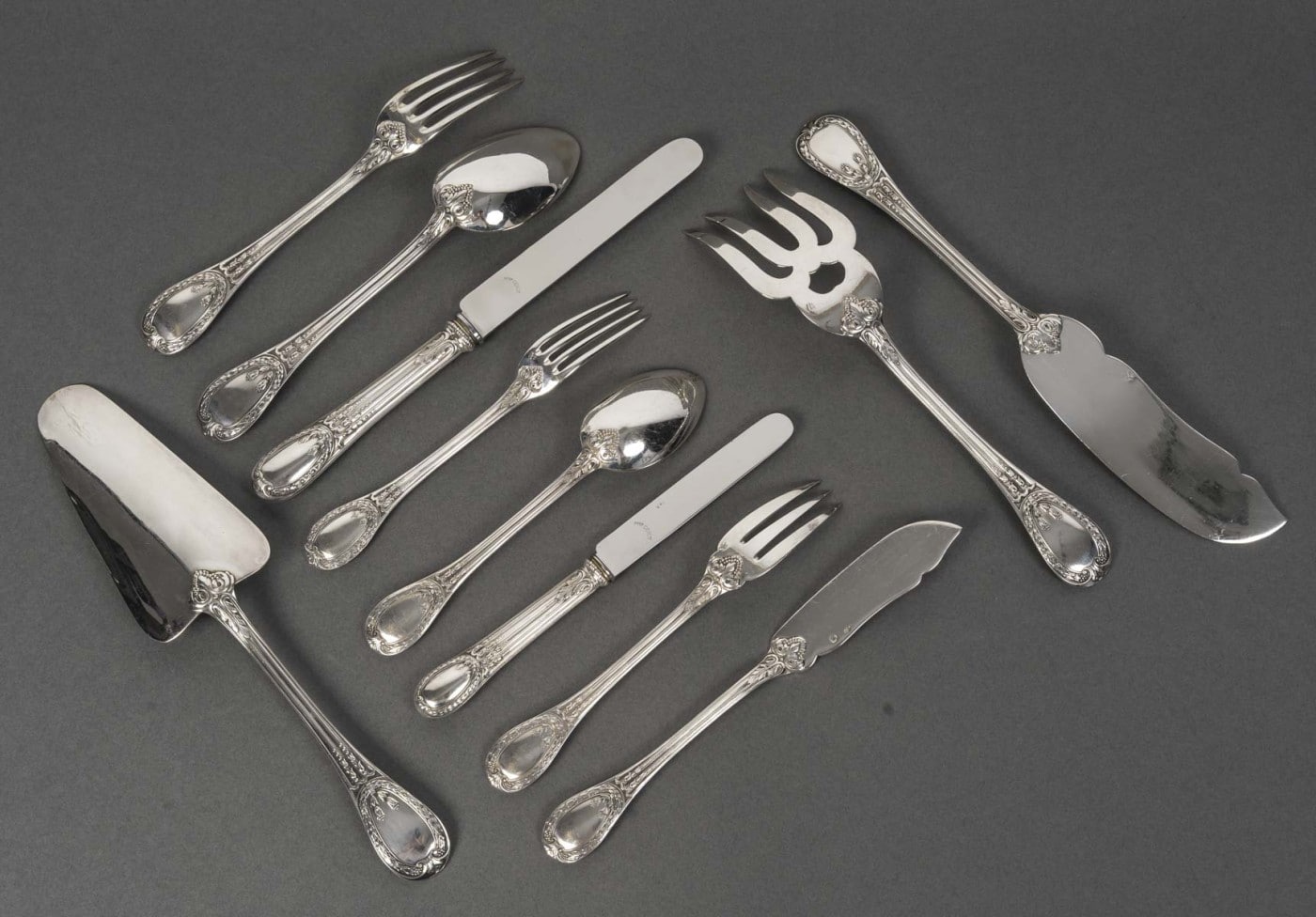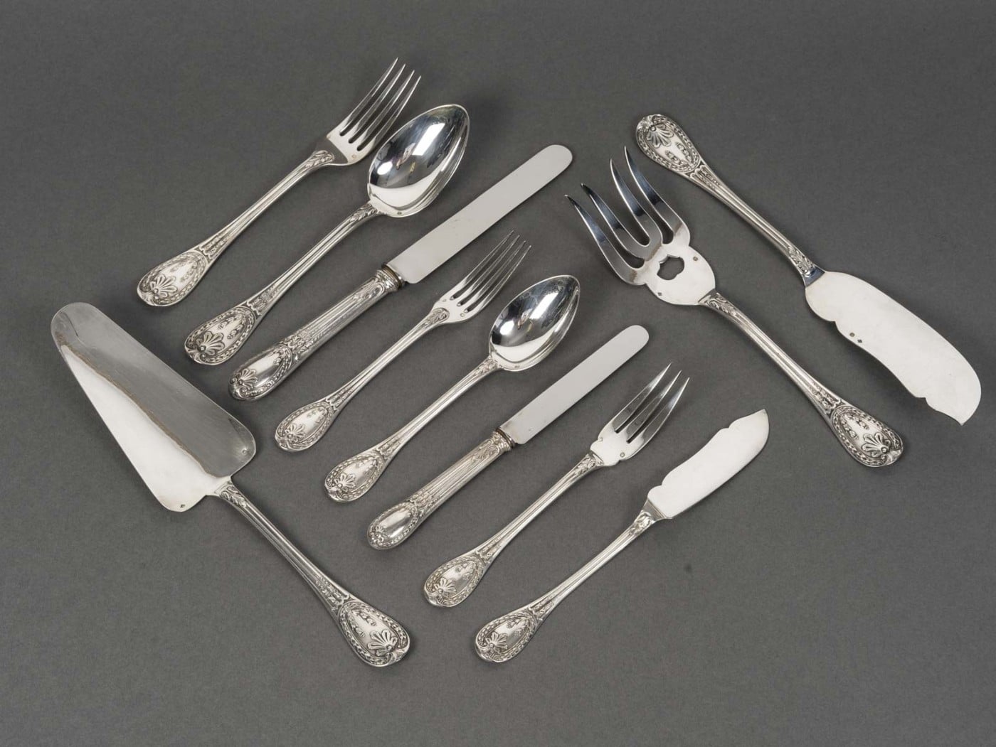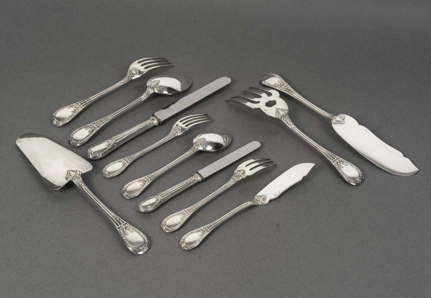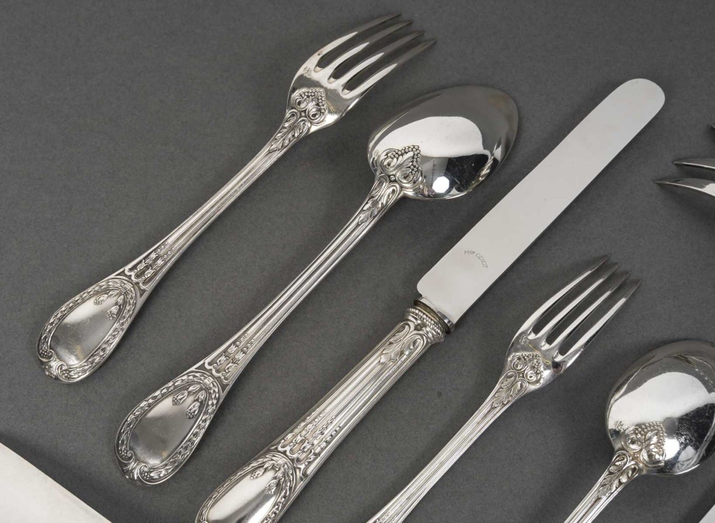 ODIOT – Ménagère modèle « LOUVECIENNES » 99 pièces Argent massif XXème