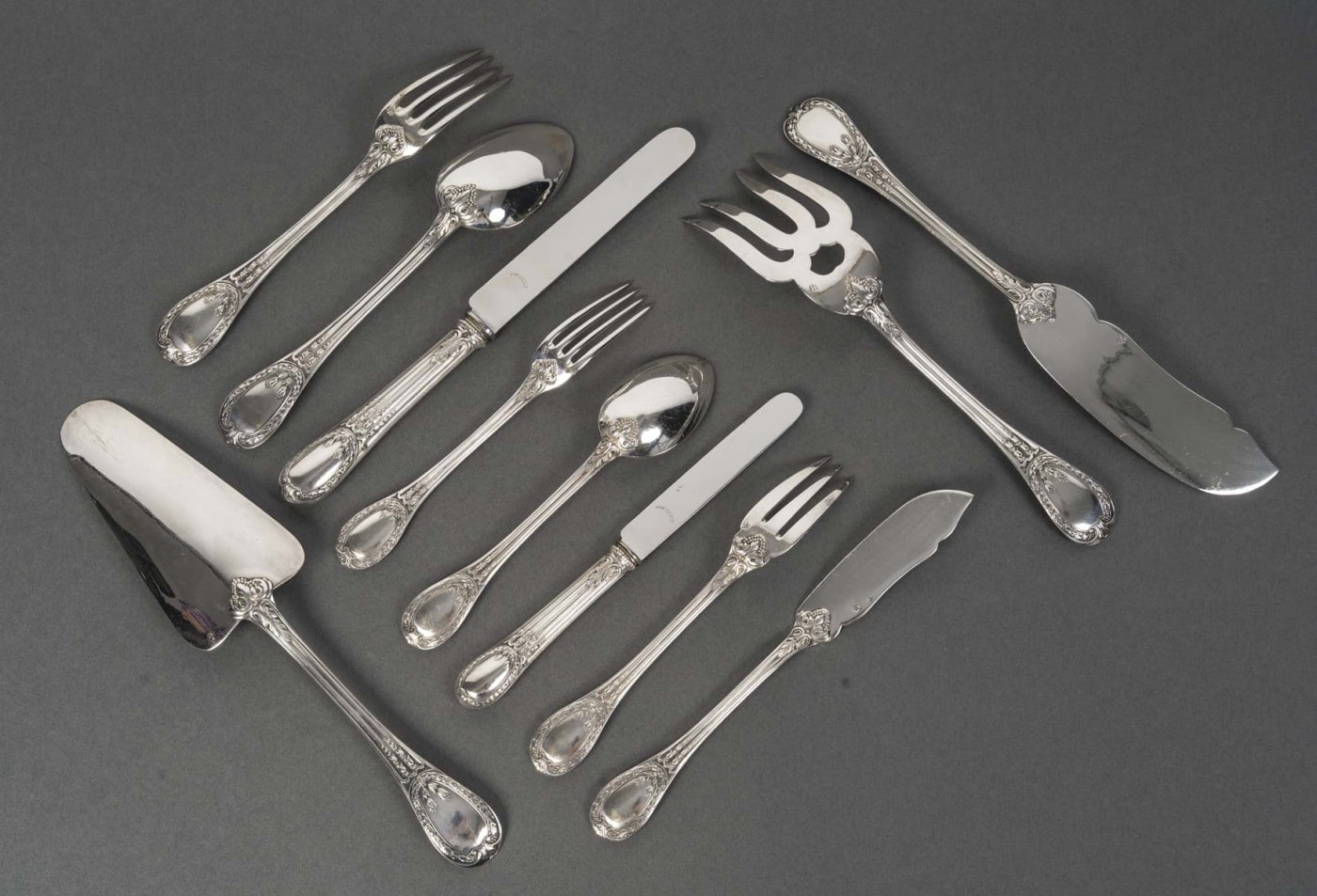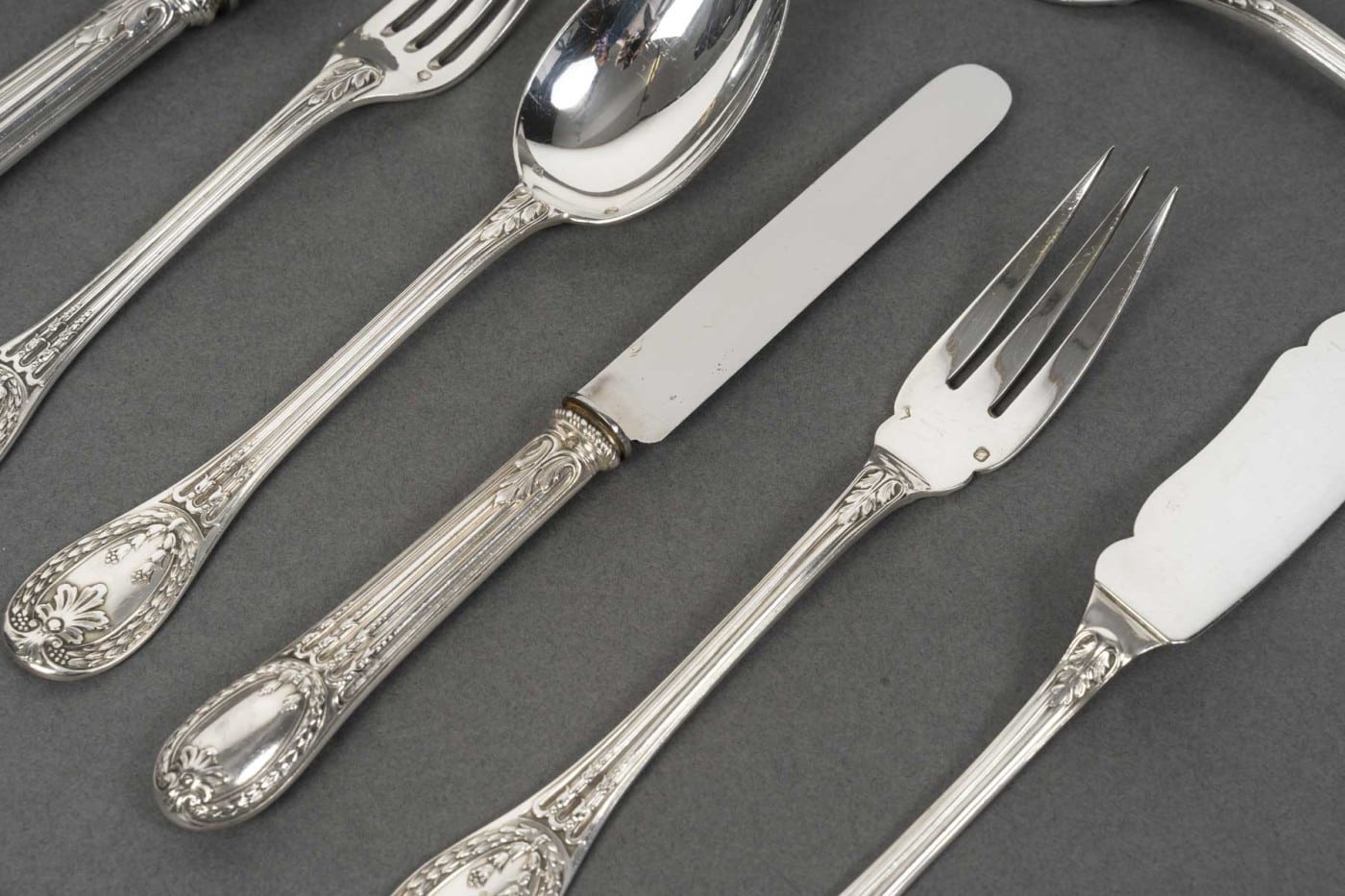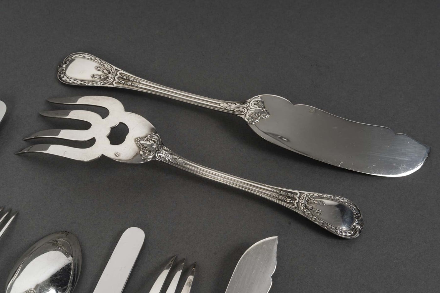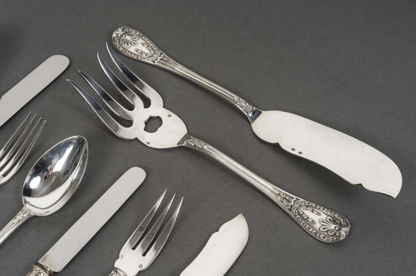 ODIOT – Ménagère modèle « LOUVECIENNES » 99 pièces Argent massif XXème